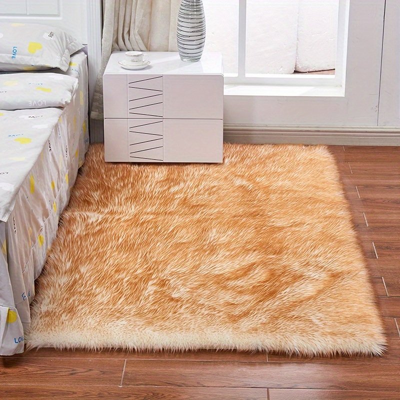 1pc Fluffy Imitation Wool Area Rug, Suede Fleece Bottom Long Imitation Wool Rug, Acrylic 80% Polyester 20%, 2.36inch Long Wool, Living Room Bedroom Ru