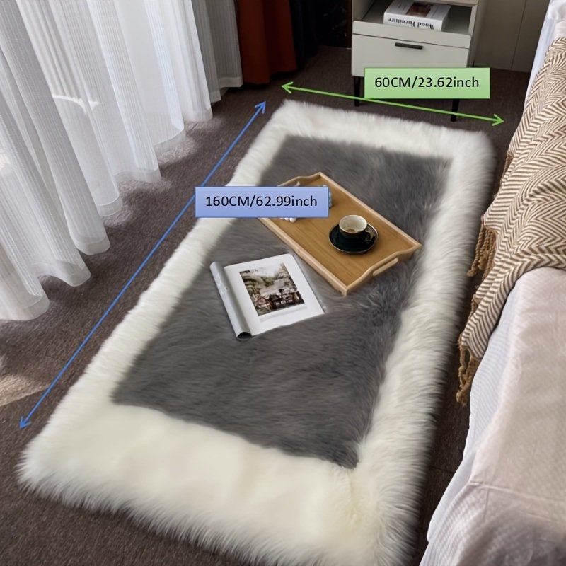 1pc, Soft and Fluffy Sheepskin Rug for Bedroom and Living Room - Non-Slip and Machine Washable Carpet for Dormitory and Room Decor - Khaki + White - 2