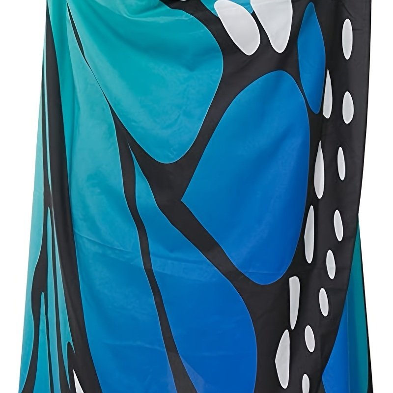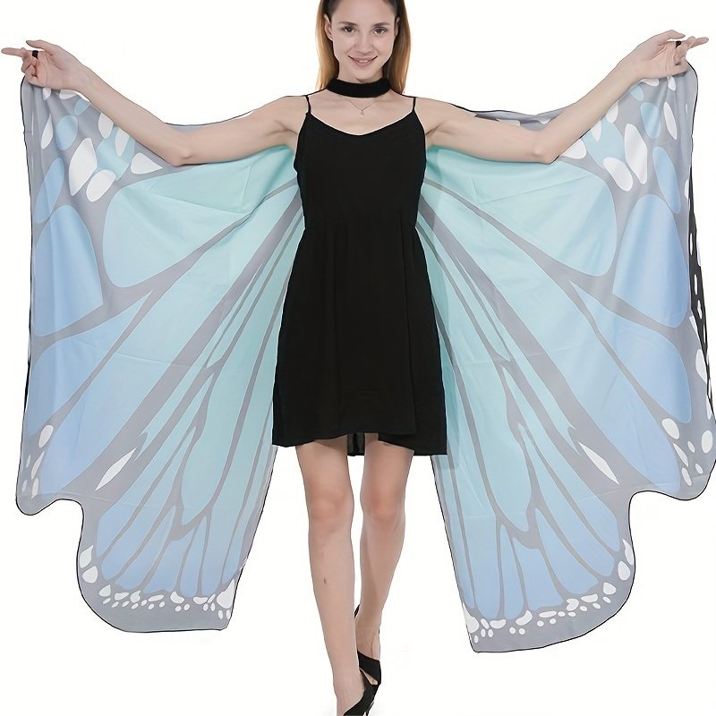 1pc, Spooktacular Creations Butterfly Wing Cape Shawl With Lace Mask And Black Velvet Antenna Headband Adult Women Halloween Costume Accessory - Blue
