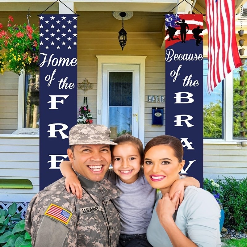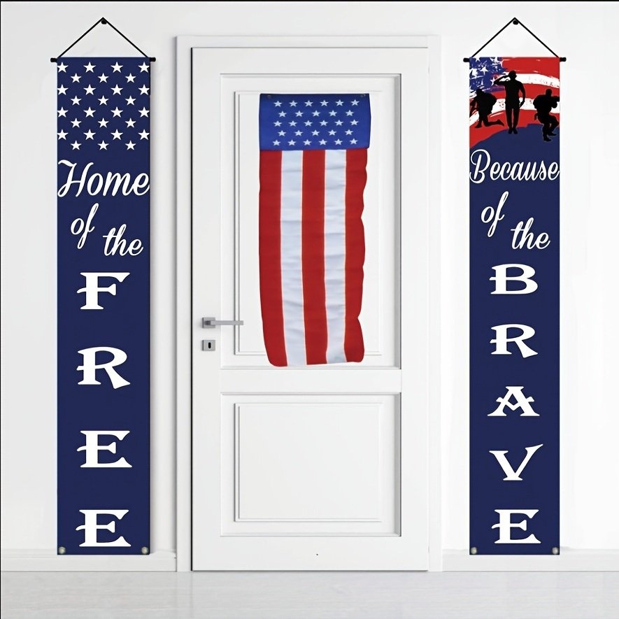1set/2pcs; American Flag Patriotic Soldier Porch Sign Banners; Patriotic Decoration For Memorial Day-4th Of July; Independence Day Veterans Day Labor