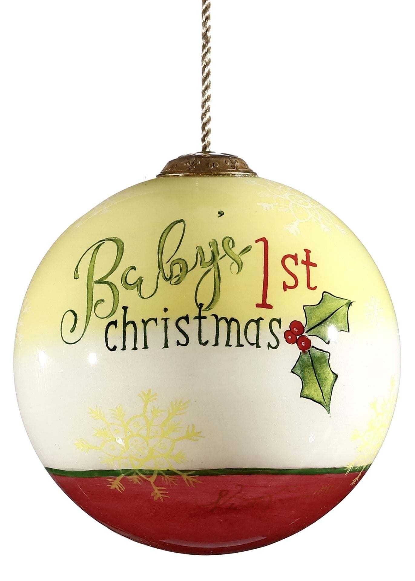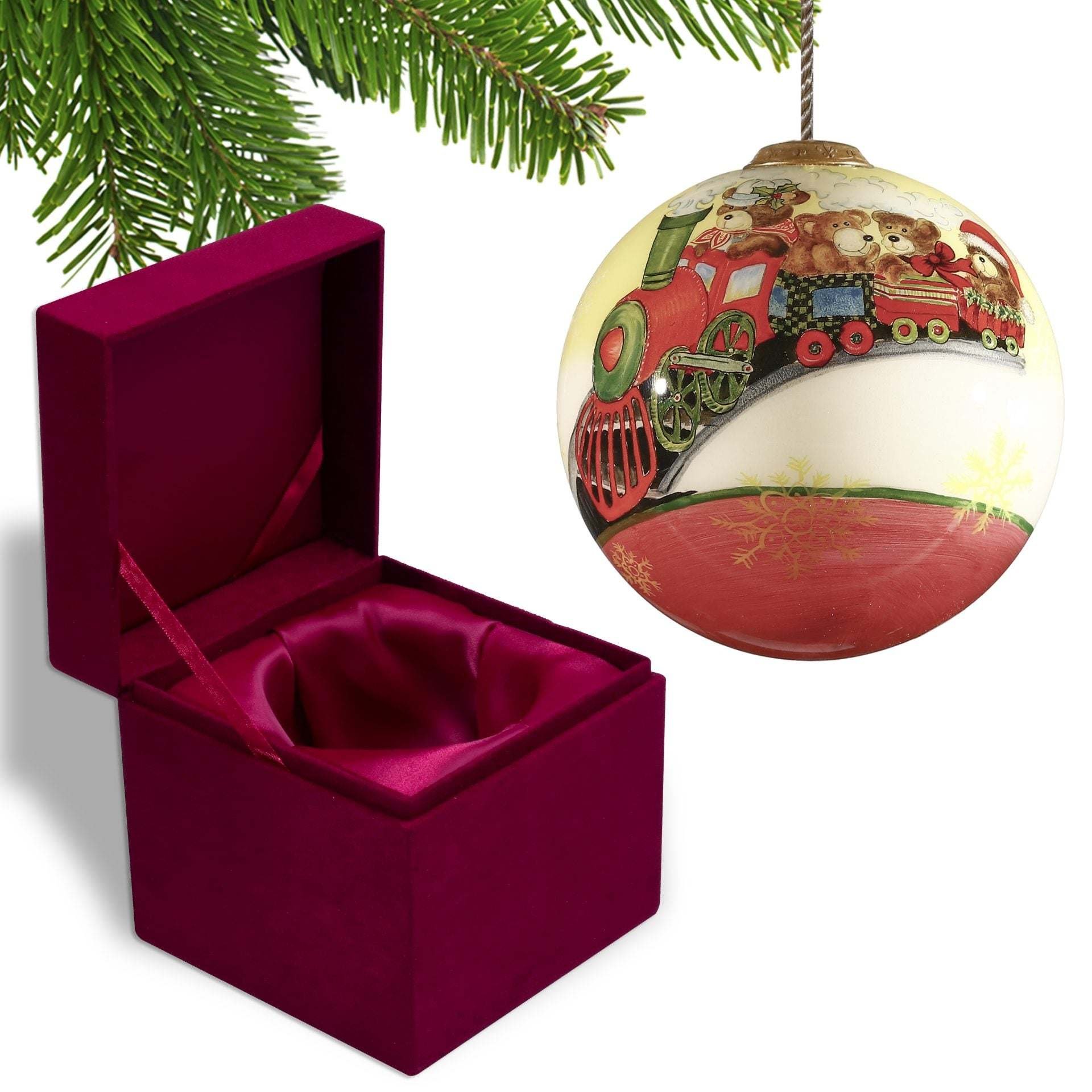 Home > Baby First Christmas Teddy Bear Train Hand Painted Glass Hanging Ornament - 1