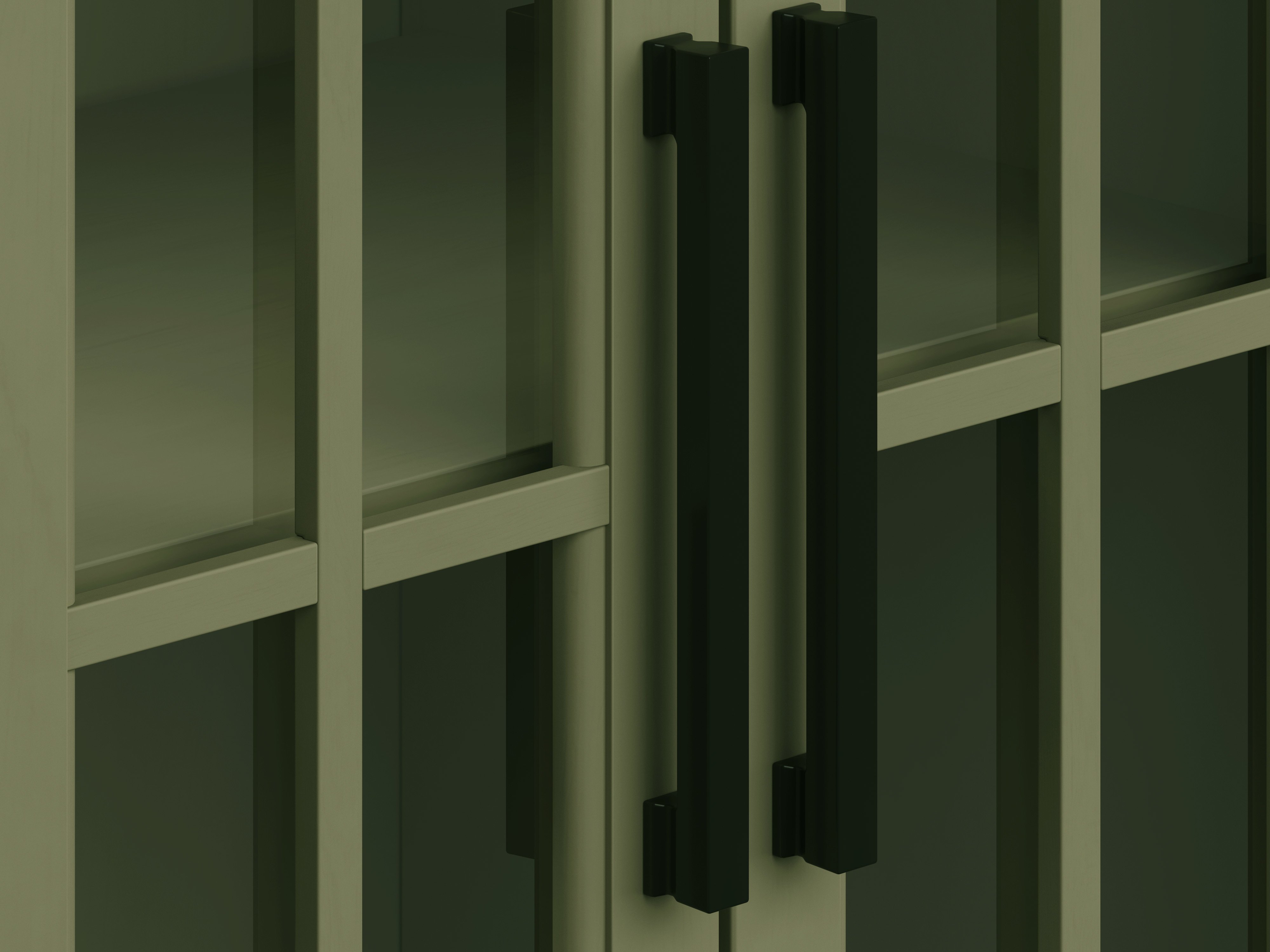The Vineyard 97 inch Fireplace TV Stand Console from Bridgevine Home delivers a flawless combination of modern farmhouse style and country simplicity. Beautifully crafted from Poplar Solids, Okoume Veneers and Knotty Alder, this Fireplace Entertainment Center features a two-tone Sage Green and Fruitwood finish and oil-rubbed Bronze hardware. Ideal for TVs up to 100 inches, this Fireplace TV Stand includes four glass windowpane doors, three shelves and cable management on the back panel for media and gaming console storage. The 42 inch electric fireplace insert includes a remote control and multiple settings allow for heat up to 400 square feet. Four (included) screws make securing the fireplace insert to the console quick and simple.