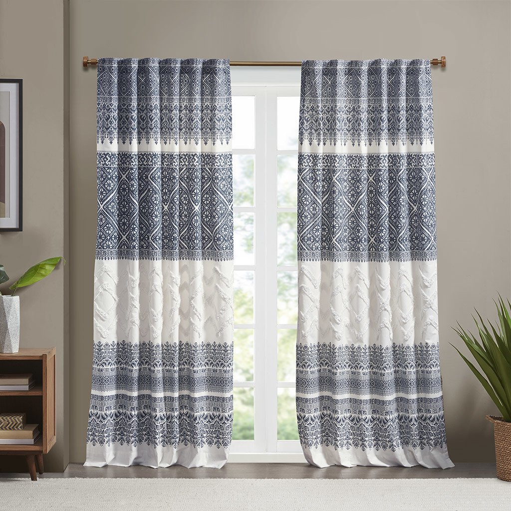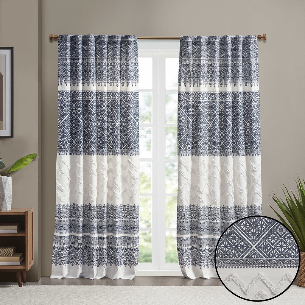 The INK+IVY Mila Cotton Printed Window Panel with Chenille Detail and Lining gives your home decor a chic boho touch. This natural white cotton window panel features an intricate global inspired print combined with rich tufted chenille detailing, for a textured artisanal look and feel. A lightweight white cotton lining on the reverse softly filters light, while providing better drapability and added privacy. In addtition, this 100% cotton curtain panel is also OEKO-TEX certified, meaning it does not contain any harmful substances or chemicals for the best in quality comfort and wellness. Each panel is finished with a rod pocket top for easy hanging, and back tabs for a more clean and tailored finish. This window panel is sold as a single and 2 window panels must be purchased to cover any standard size window. Complete the look with coordinating bedding sets, available and sold separately.