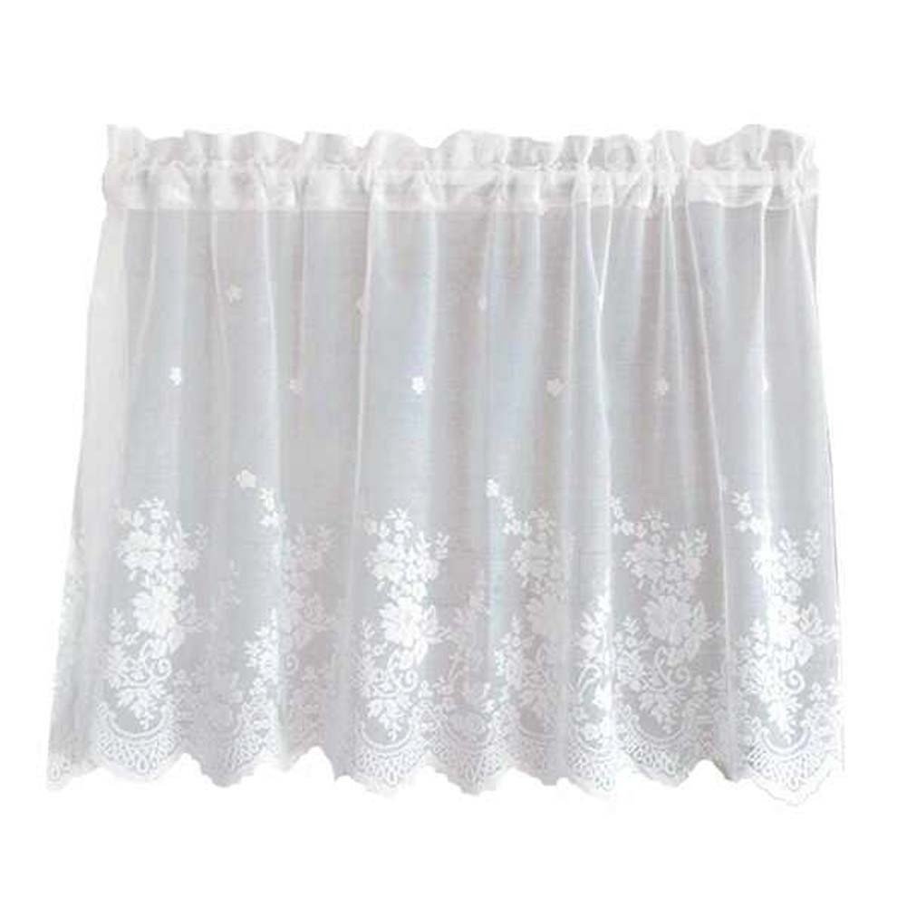 Flower Lace White Half Curtain Short Curtain Doorway Curtain Gauze Rustic Kitchen Partition Curtain Tier Cafe Curtain,59x23 inch - Default