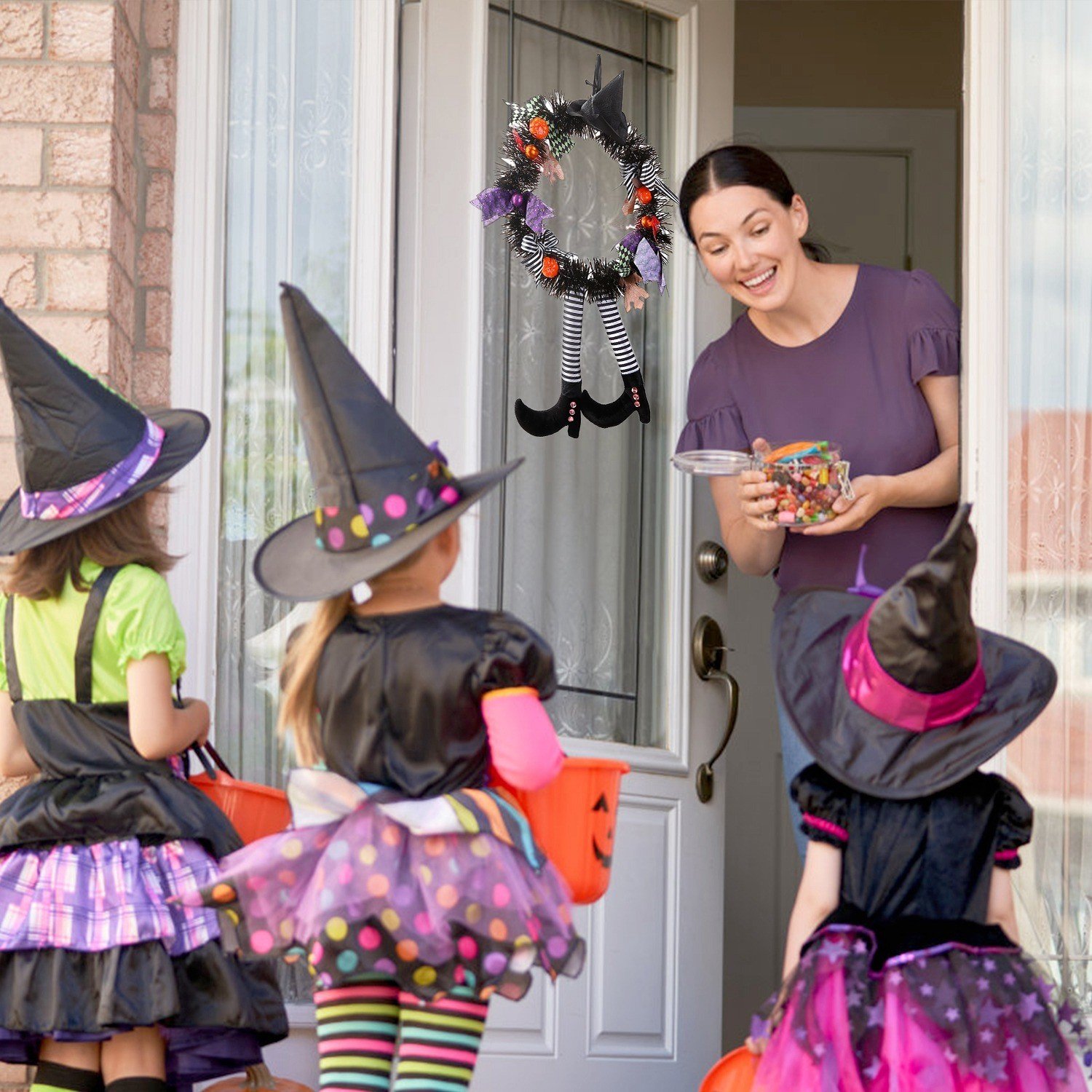 *Create Strong Halloween Atmosphere*:Designed with a witch hat on the top and two witch legs on the bottom; the wreath is like a witch as a sign on the door to welcome all guests to your home in Halloween. Perfect decor to fill your home with a strong Halloween atmosphere!