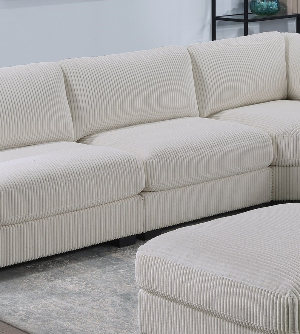 Product Description:- With the flexibility of separate pieces, you can create almost any shape, letting you design your furniture to suit your living room needs. This compact modular piece stands on low legs that are just barely visible, giving it its modern look. It's wrapped in super soft corduroy in a warm neutral hue that makes it even more inviting to family and friends.