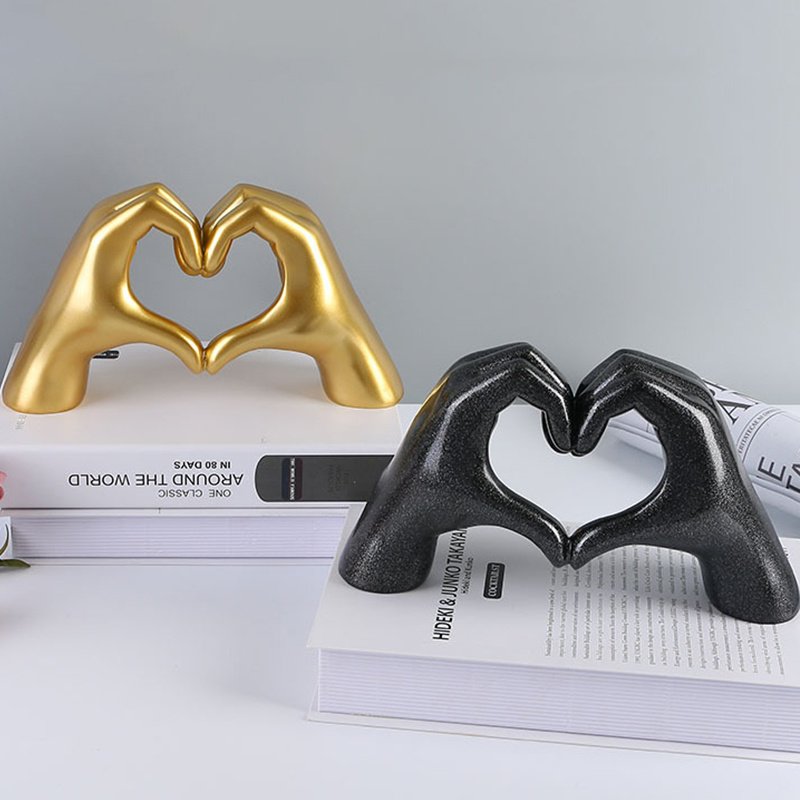 Home > Nordic Heart Gesture Sculpture Resin Abstract Hand Love Statue Figurines Wedding Home Living Room Desktop Ornaments Room Decor - Black Heart Gesture