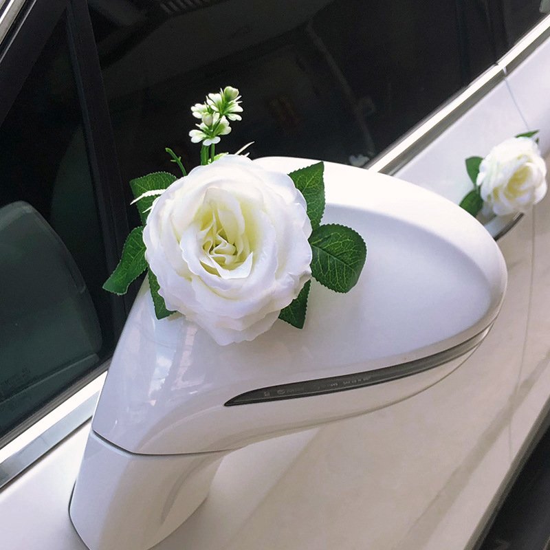 White/Red Rose Artificial Flower Wedding Car Decor Kit Bridal Car Decorations Romantic Fake Rose Ribbons Silk Flower Door Handle