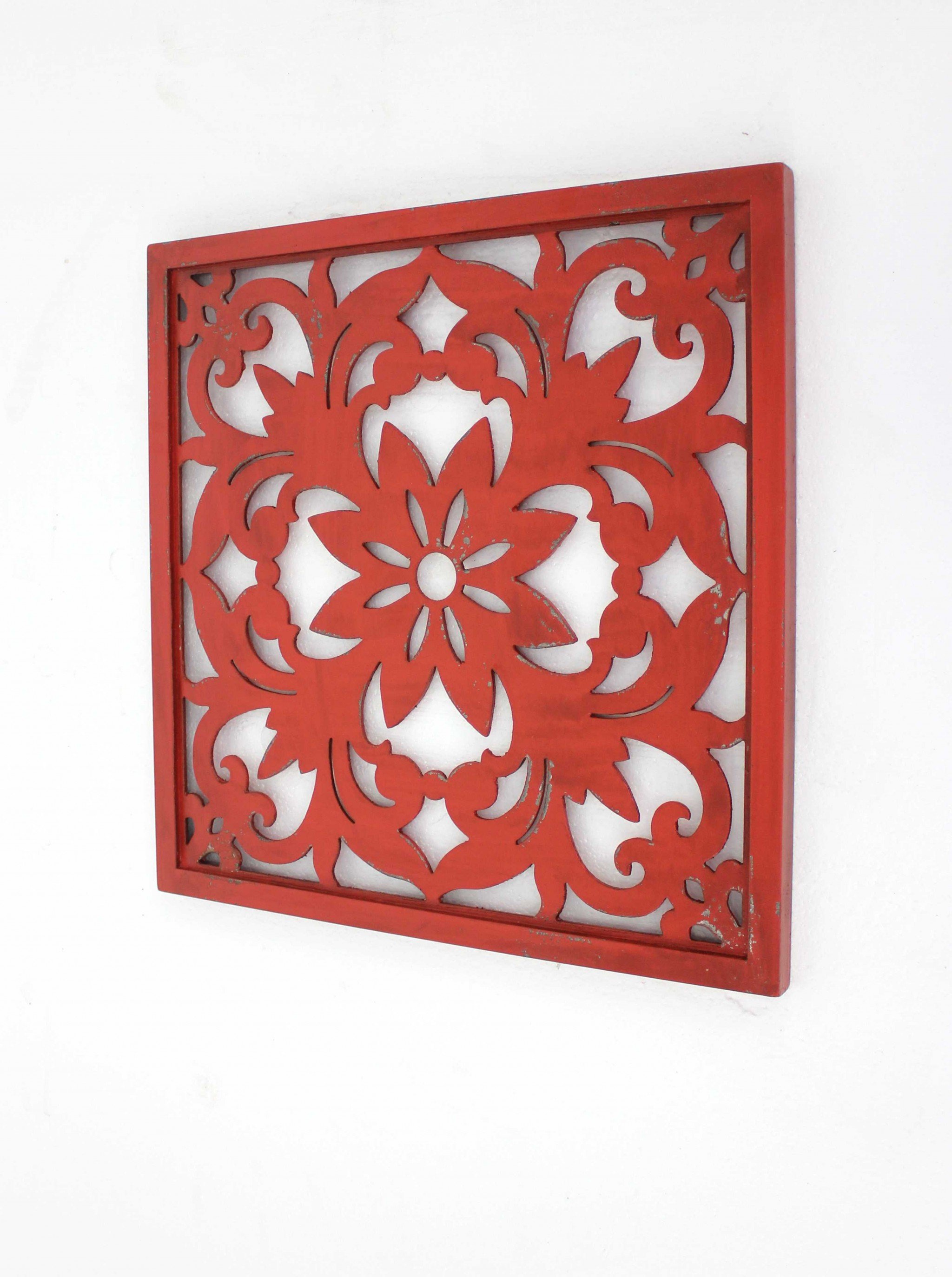 enjoy the decorative prowess of this vintage style wall plaque as it complements every detail of your home decor. our wall plaque is beautifully crafted from top-quality wood and durable metal that will enable long-lasting aesthetic and stylish performance in your living space. this wall art features floral sculptural pattern with its frame complemented with a red finish. this piece comes in an antique style that will sync elegantly with every decor in your home whether in the living room, hallway, dining room or garden. with its vintage touch and glamorous appearance, let our chic wall plaque completely transform your beautiful living space in grand style. - vintage collection - red finish - floral sculptural pattern - square shaped