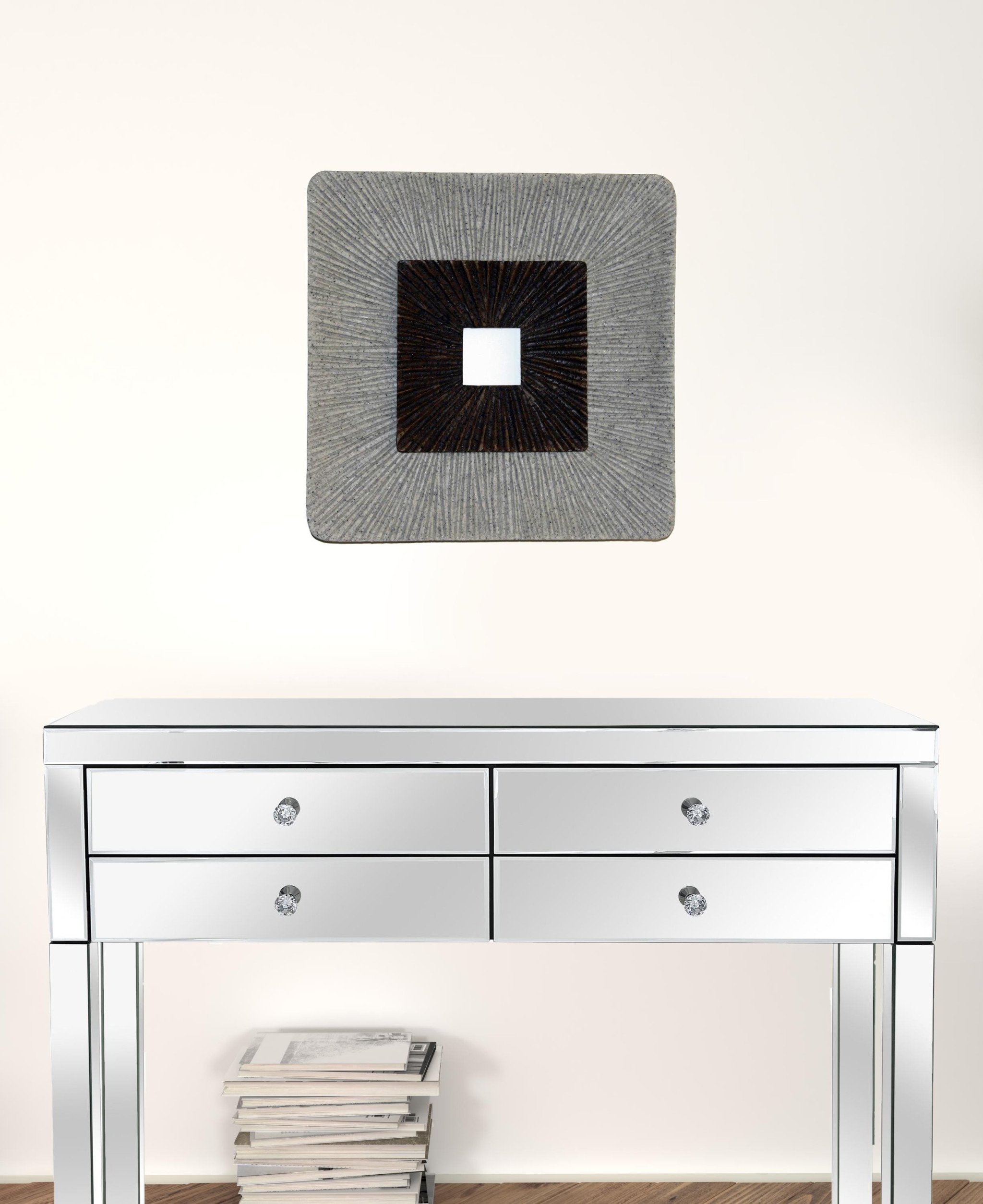 This square wall art features a captivating simple spiral modern and contemporary design that will put a tantalizing visual effect on your entire home setting. It comes in an incaved square design complemented with ribbed finish meant to seamlessly blend with existing decor in your home. This is a part of our wall art collection that is perfectly crafted to aesthetically wow you and your guests for many years to come. 19" X 19" X 2.5"