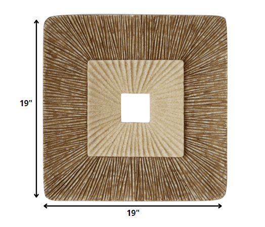 19" X 19" X 2.5" Brown Concave Square Double Layer Ribbed Wall Plaque