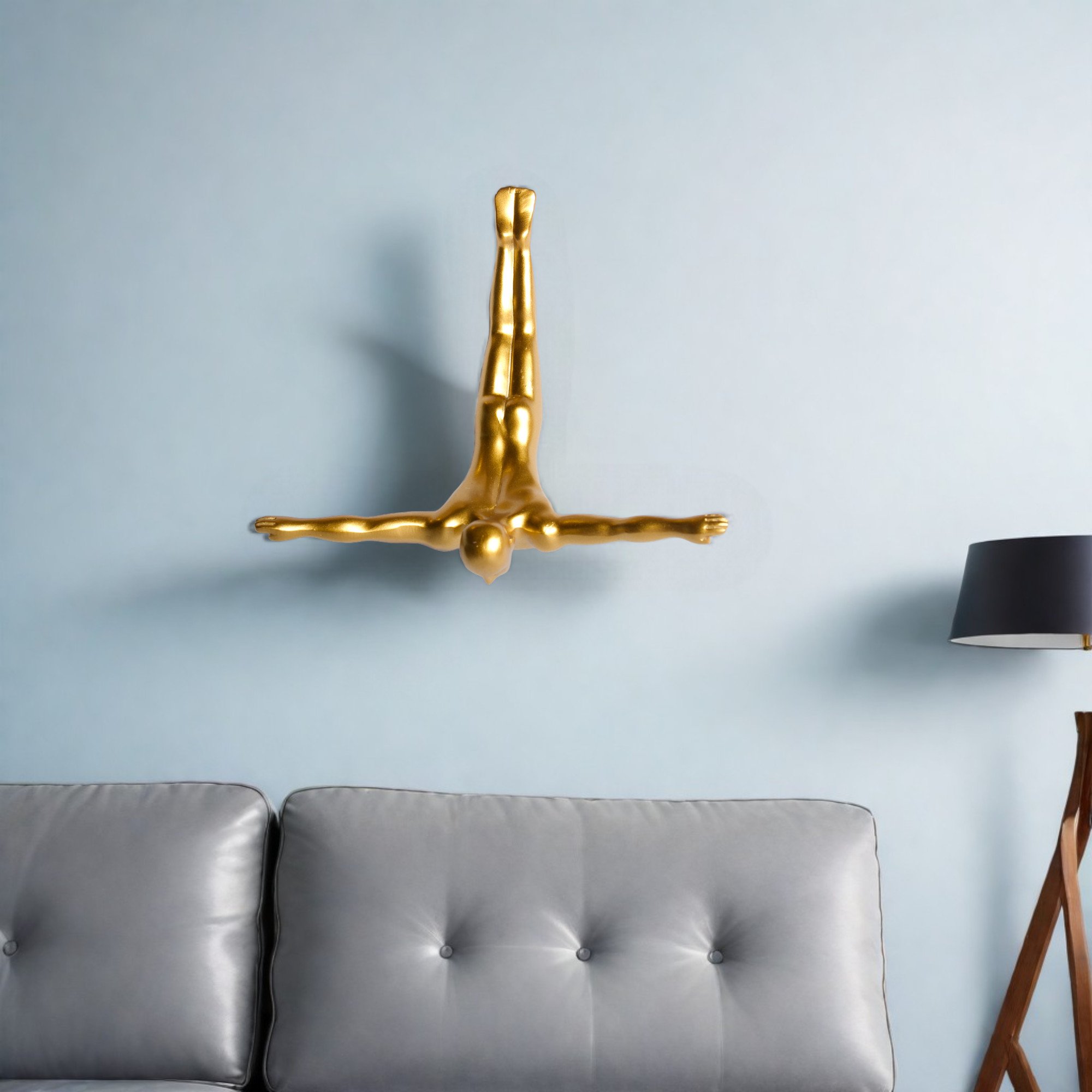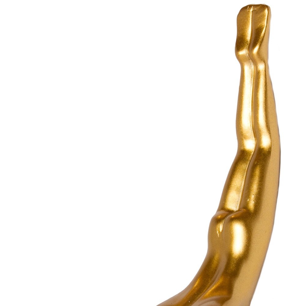 Enhance your room's ambiance with this truly unique resin wall decor in a stylish gold finish. Elevate your living space effortlessly by incorporating this contemporary piece into your decor scheme. Crafted from high-quality resin, this eye catching three dimensional decor gives the impression of a diver coming out of the wall. 6.5-inch H x 6.5-inch W x 2.5-inch D