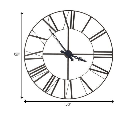50" Circle Black Metal Skeleton Wall Clock