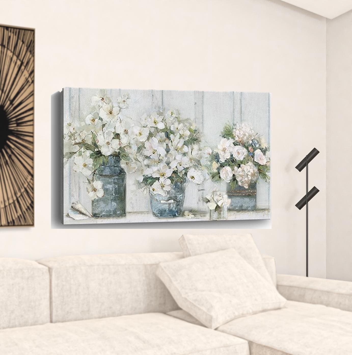 This 48 inches x 32 inches watercolor soft pastel bouquet trio canvas wall art will add a beautiful decorative accent to your decor. This print is a visual artistic expression that allows you to decorate your space in style. Reproduced for you on canvas, this hanging decorative accent will be a trendy and fashionable way to dress your walls. Hang on your wall to add some up to date fashion and decoration. Instantly liven up your space with this art that brings color and dimension to your walls. 48 inches H x 32 inches W x 1.25 inches D