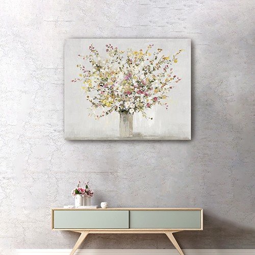 Add an air of fashion to your room and rejuvenate the space with this small colorful wildflowers in a vase canvas wall art. This print is a visual artistic expression that allows you to decorate your space in style. Reproduced for you on canvas, this hanging decorative accent will be a trendy and fashionable way to dress your walls. Adding this hanging wall art to your space to make your room feel more finished and attractive. Utilize this opportunity to create a focal point in the room with this fabulous wall decor option. 20 inches H x 16 inches W x 1.25 inches D