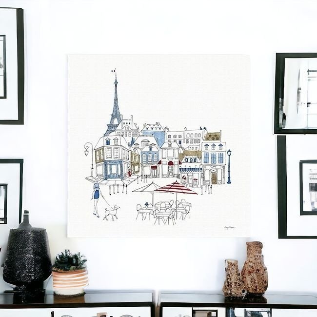 The french caf with red and blue accents unframed print wall art is the perfect decorative accessory for your home. This print is a visual artistic expression that allows you to decorate your space in style. Reproduced for you on canvas, this hanging decorative accent will be a trendy and fashionable way to dress your walls. Adding this hanging wall art to your space to make your room feel more finished and attractive. Utilize this opportunity to create a focal point in the room with this fabulous wall decor option. 20 inches H x 20 inches W x 1.25 inches D