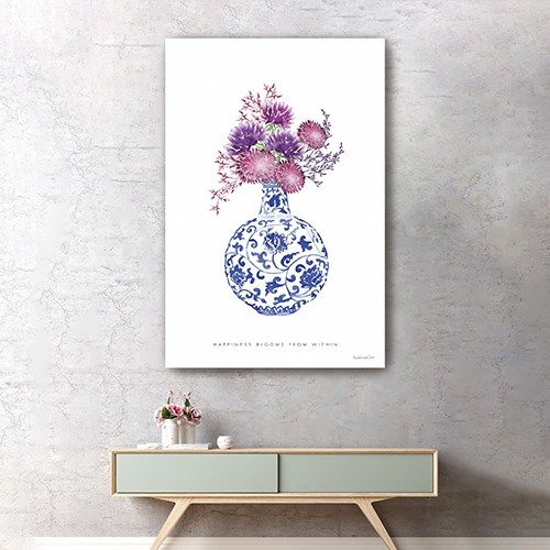 The 24 inches x 16 inches blue and white happiness floral vase canvas wall art is the perfect decorative accessory for your home. This print is a visual artistic expression that allows you to decorate your space in style. Reproduced for you on canvas, this hanging decorative accent will be a trendy and fashionable way to dress your walls. Adding this hanging wall art to your space to make your room feel more finished and attractive. Instantly liven up your space with this art that brings color and dimension to your walls. 24 inches H x 16 inches W x 1.25 inches D