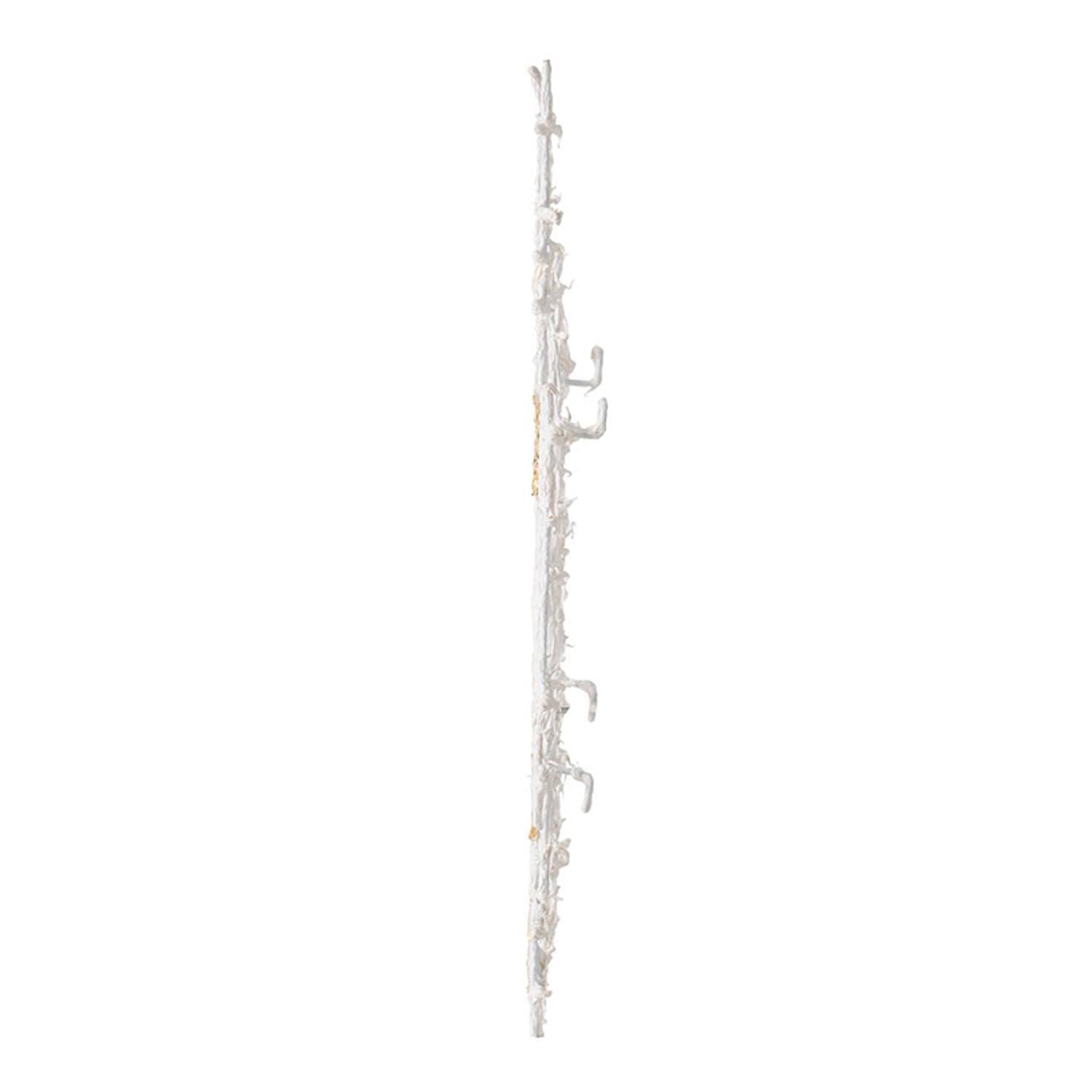 Elevate the blank canvases of your modern interior with this uniquely designed Contemporary White and Gold Geo Grid Wall Art. The paint-like geometric grid pattern is beautifully brushed in white while the specks of golden accents add to a modern charm while accentuating a sophisticated look. This sophisticated wall décor is skillfully crafted from iron and paper for enhanced durability and versatility. Wrapped in modern simplicity with a playful flair, this wall décor will be the perfect piece of contemporary art to allure the gaze of the guests. 23.6” X 31.7” x 1.6”
