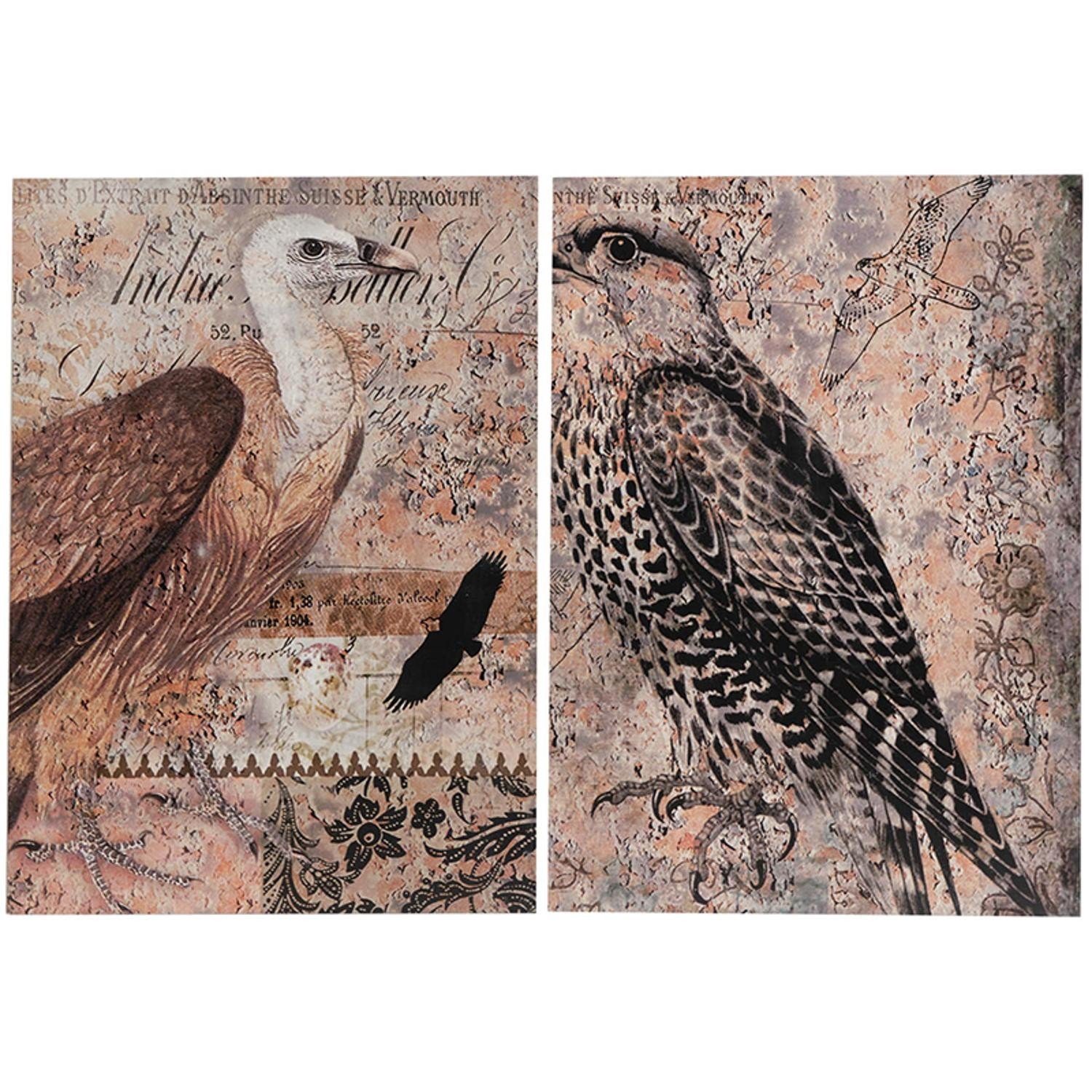 Lend a luxurious touch into your home with this Set of 2 Antique Post Card Birds Wall Art that features a rustic blend of warm-toned hues to emphasize an industrial vibe into your living space. Showing off two vultures facing each other while the intricacy of the details in the artwork is sure to allure the gaze of many with its fusion of brown, black, being, and white palette. Printed on high quality MDF these pictures are great paired together or can be used separately how you choose. Ideal for study area, living room, or bedroom, it will serve as a stunning addition to the plain-looking walls. 27.6” x 19.7” x 1” each. Set of 2.