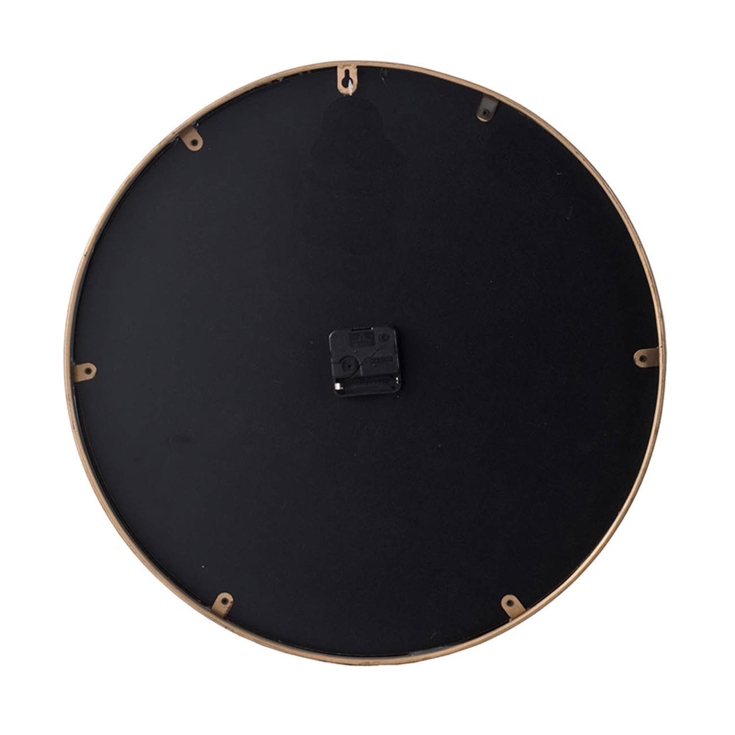 Standing out in style and simplicity, this Modern Minimal Gold and Mirror Round Wall Clock will lend a modern touch to your home with a glamorous tone. The gleaming brass-toned frame encloses a mirror face with soft gold remnants, making this timepiece an ideal fit for any contemporary setting. Featuring a perfect round shape with short arms and no numerals, this wall clock emerges as a sophisticated piece of décor to complement your modern living room, entryway, hallway, or foyer. Made of high-quality iron, mirror, MDF, and glass to stand the test of time and serve as a practical accent on the wall. 19.7” x 19.7” x 2.4”