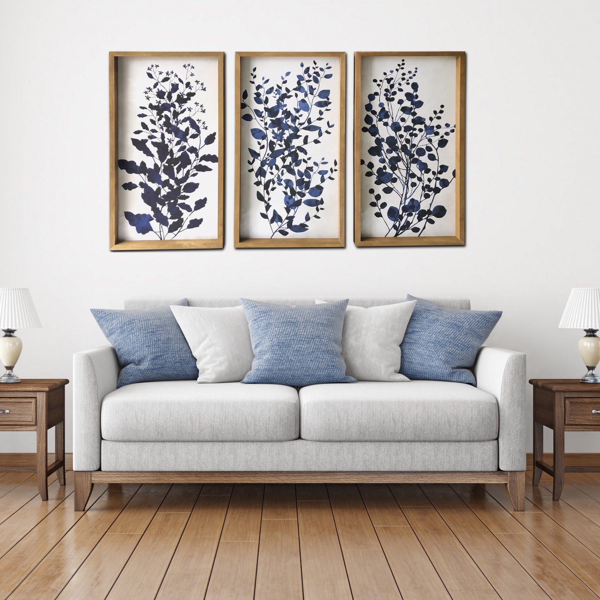 Unique and decorative, this set of three blue branches framed canvas wall art picture frame graphic art wall art will leave a lasting impression. Reproduced for you on canvas, this hanging decorative accent will be a trendy and fashionable way to dress your walls. Hang on your wall to add some up to date fashion and decoration. Instantly liven up your space with this art that brings color and dimension to your walls. 30-inch H x 48-inch W x 1.37-inch D