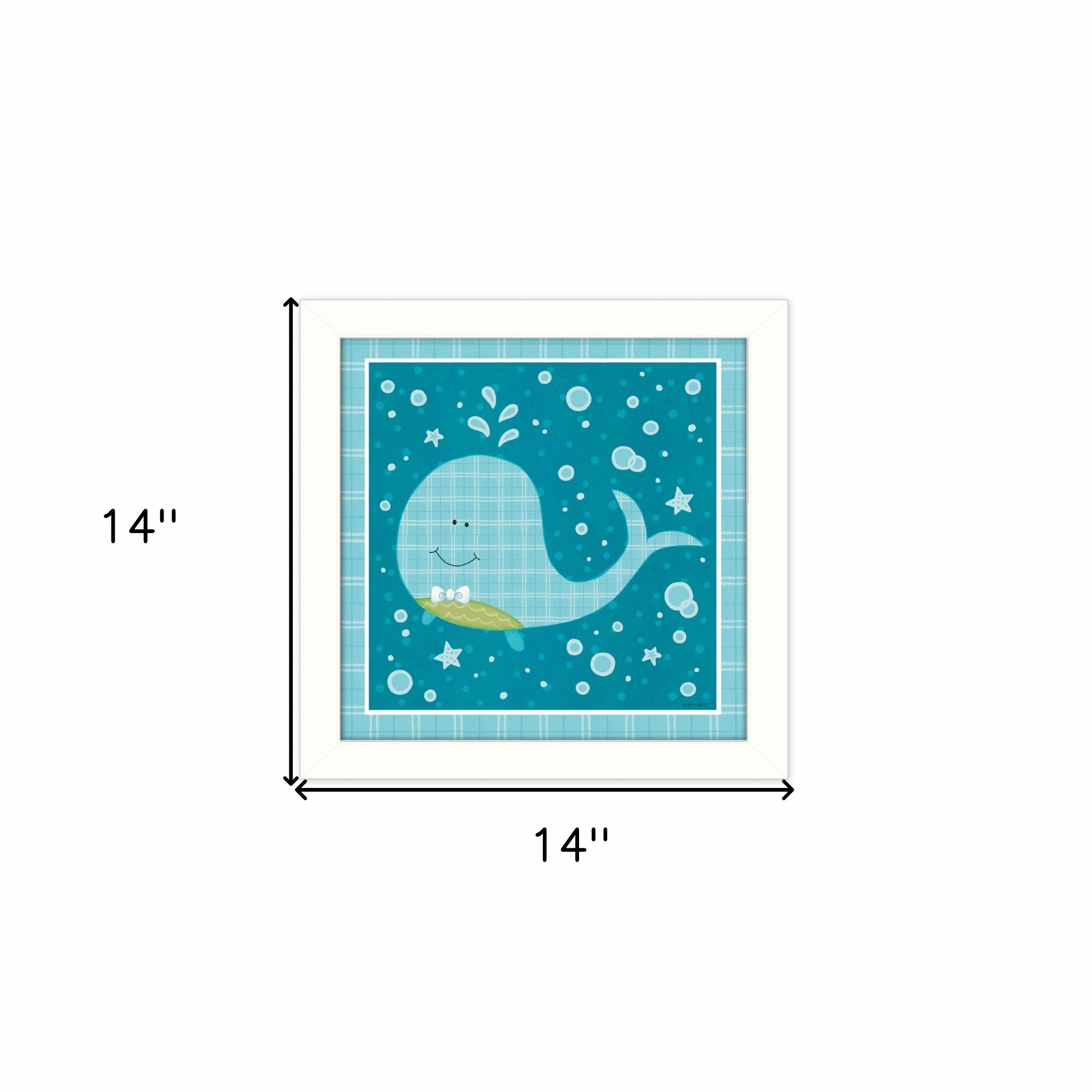 This beetle and bob baby whale white framed print wall art will add a beautiful decorative accent to your decor. Bring a little bit of tropical sea life indoors with this good looking whale art. This print is a visual artistic expression that allows you to decorate your space in style. Reproduced for you on paper, this hanging decorative accent will be a trendy and fashionable way to dress your walls. Hang on your wall to add some up to date fashion and decoration. Instantly liven up your space with this art that brings color and dimension to your walls. 14-inch H x 14-inch W x 1-inch D