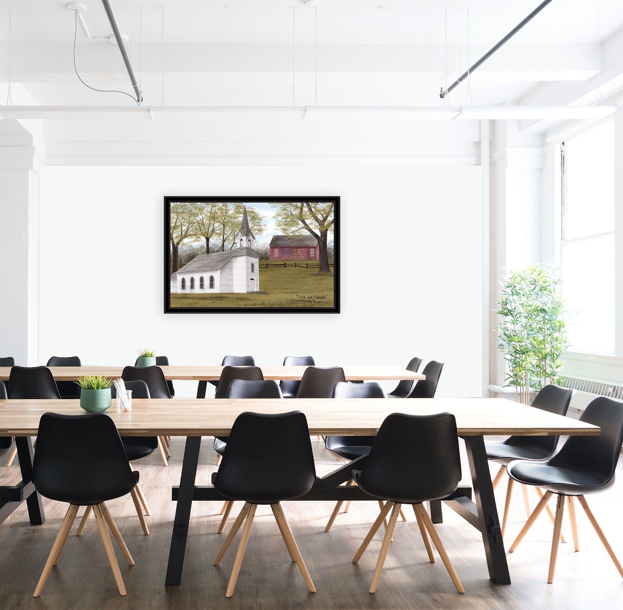 The faith and freedom 7 black framed print wall art is the perfect decorative accessory for your home. This print is a visual artistic expression that allows you to decorate your space in style. Reproduced for you on paper, this hanging decorative accent will be a trendy and fashionable way to dress your walls. Hang on your wall to add some up to date fashion and decoration. Utilize this opportunity to create a focal point in the room with this fabulous wall decor option. 26 inches H x 38 inches W x 1 inches D