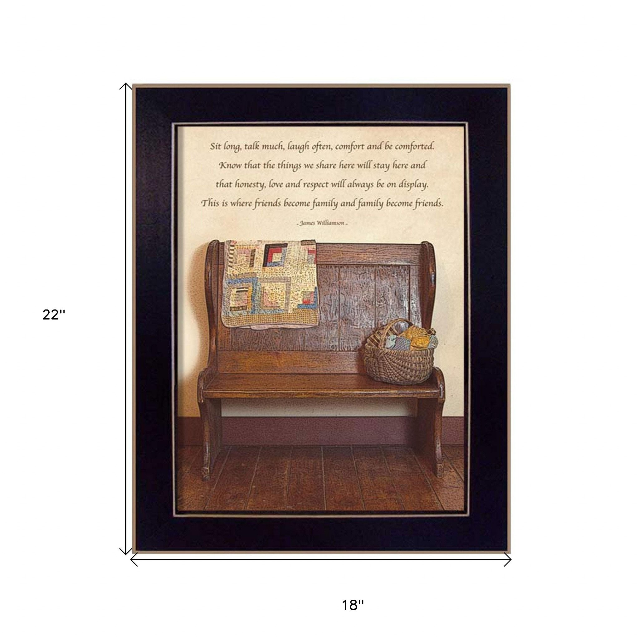 Unique and decorative, this friends become family black framed print wall art will leave a lasting impression. This print is a visual artistic expression that allows you to decorate your space in style. Reproduced for you on paper, this hanging decorative accent will be a trendy and fashionable way to dress your walls. Adding this hanging wall art to your space to make your room feel more finished and attractive. Utilize this opportunity to create a focal point in the room with this fabulous wall decor option. 22-inch H x 18-inch W x 1-inch D
