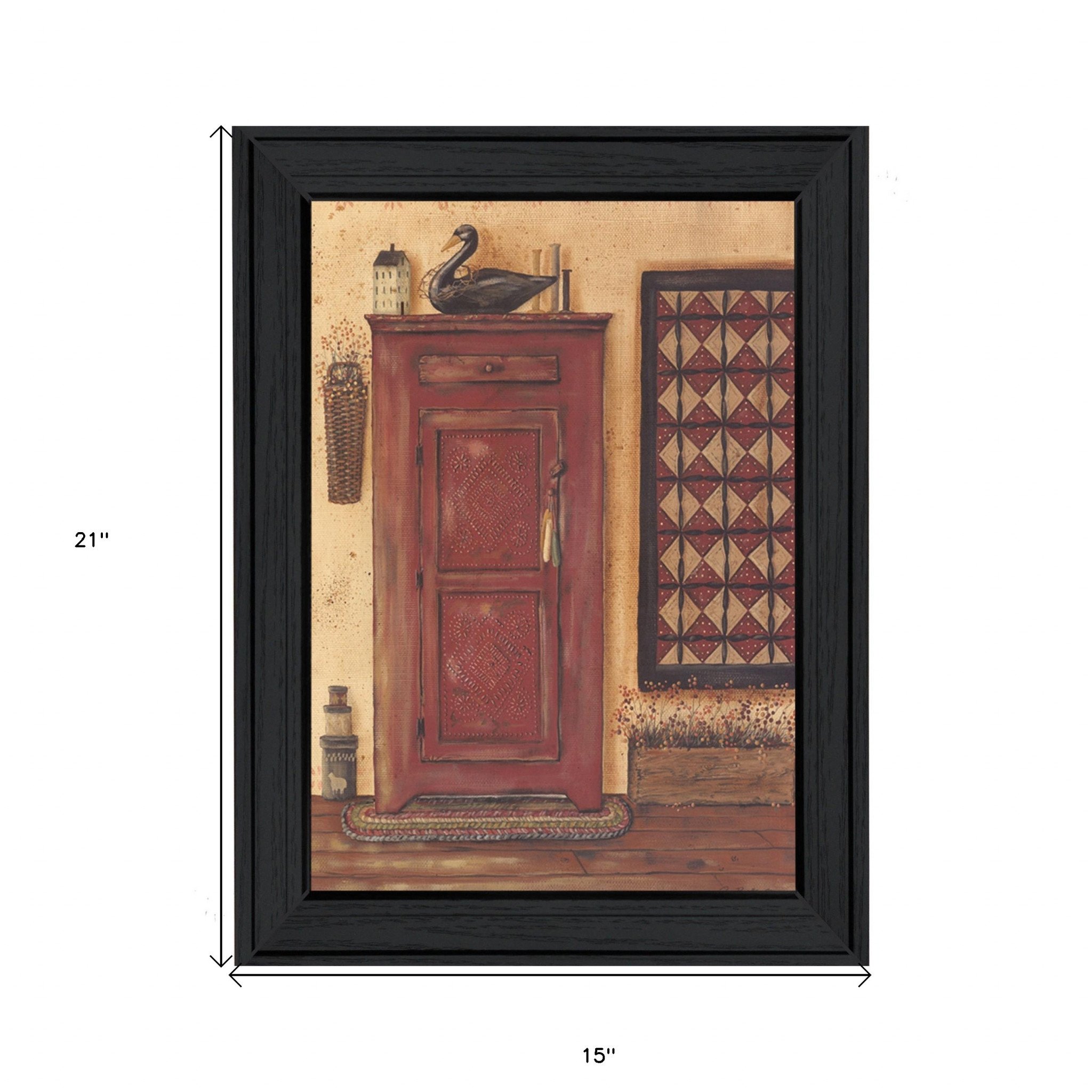 Add an air of fashion to your room and rejuvenate the space with this old red pie safe black framed print wall art. This print is a visual artistic expression that allows you to decorate your space in style. Reproduced for you on paper, this hanging decorative accent will be a trendy and fashionable way to dress your walls. Adding this hanging wall art to your space to make your room feel more finished and attractive. Utilize this opportunity to create a focal point in the room with this fabulous wall decor option. 21-inch H x 15-inch W x 1-inch D