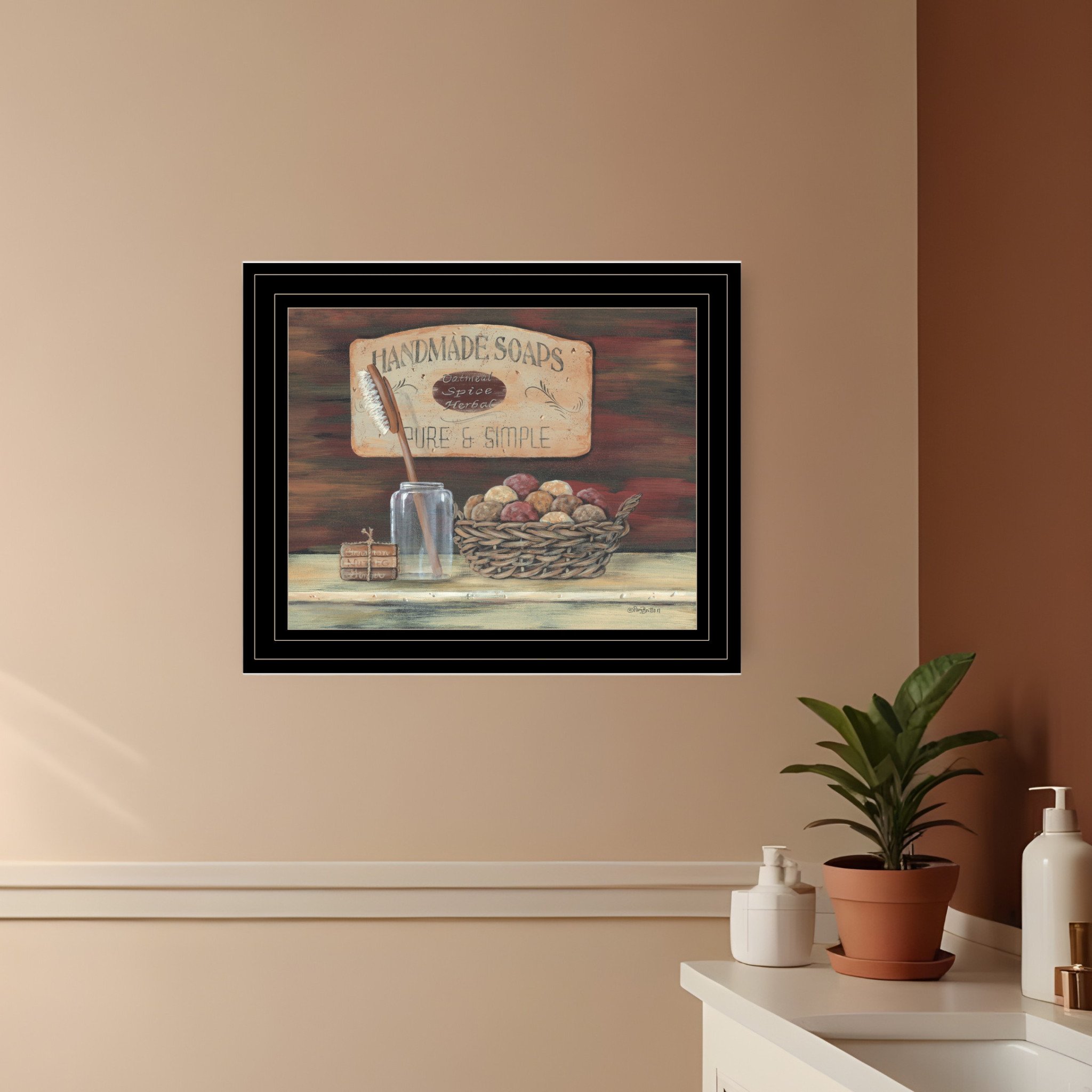 This handmade soaps 3 black framed print bathroom wall art will add a beautiful decorative accent to your decor. This print is a visual artistic expression that allows you to decorate your space in style. Reproduced for you on paper, this hanging decorative accent will be a trendy and fashionable way to dress your walls. Adding this hanging wall art to your space to make your room feel more finished and attractive. Utilize this opportunity to create a focal point in the room with this fabulous wall decor option. 14-inch H x 17-inch W x 1-inch D