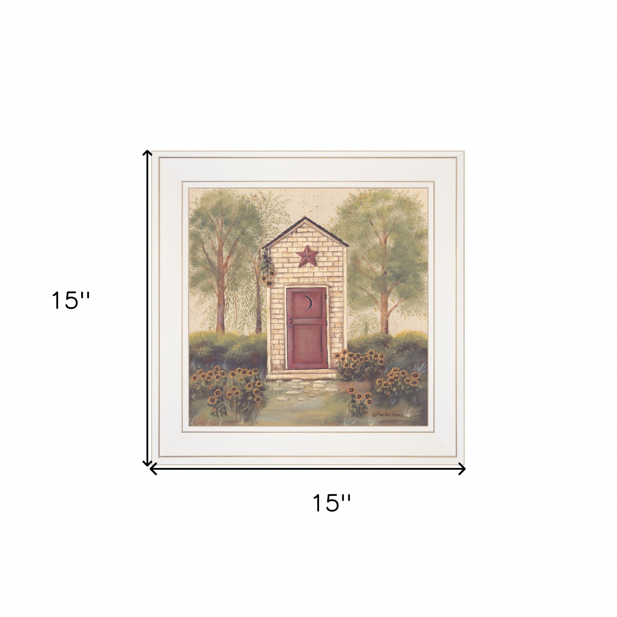 Bring some sizzle to your space with this eye-catching folk art outhouse iii 1 white framed print wall art. This print is a visual artistic expression that allows you to decorate your space in style. Reproduced for you on paper, this hanging decorative accent will be a trendy and fashionable way to dress your walls. Hang on your wall to add some up to date fashion and decoration. Utilize this opportunity to create a focal point in the room with this fabulous wall decor option. 15-inch H x 15-inch W x 1-inch D