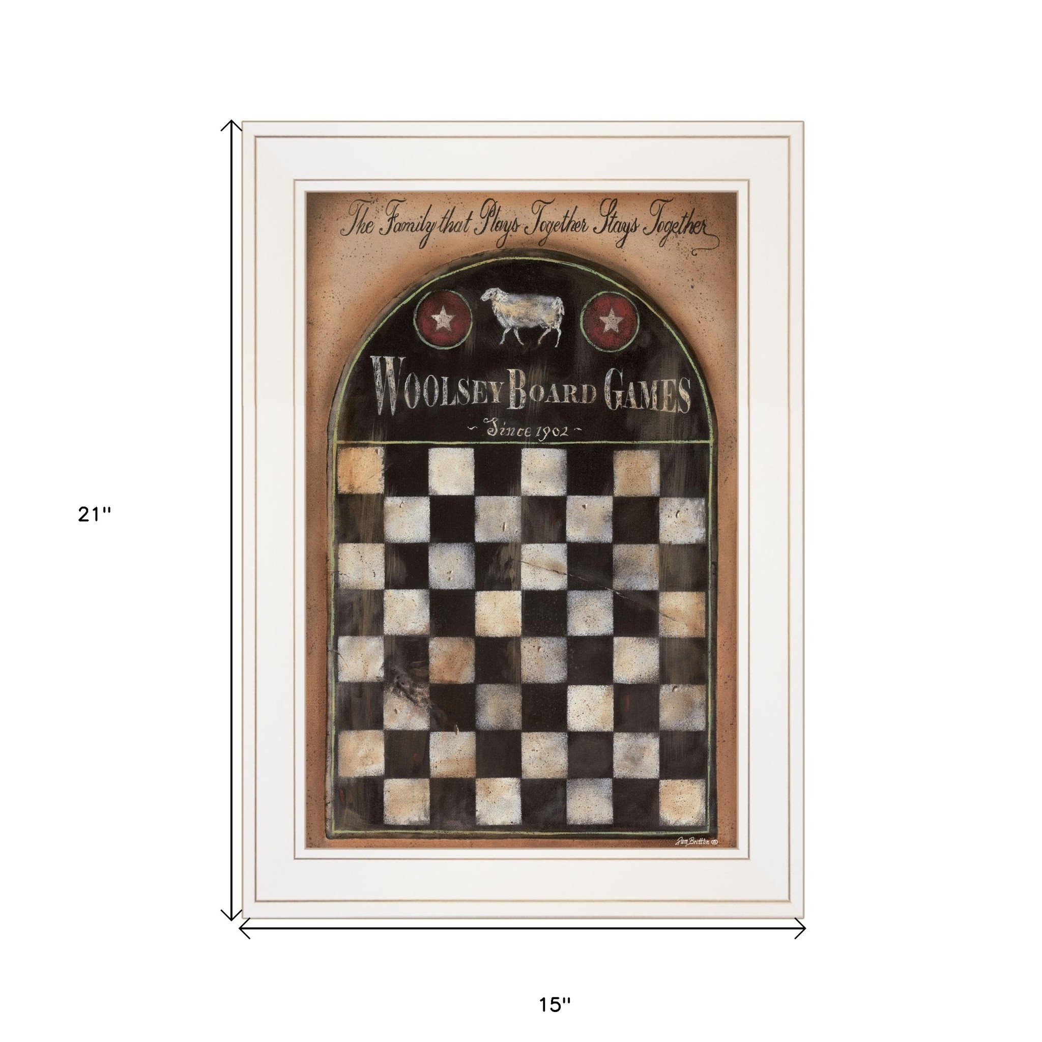 Bring some sizzle to your space with this eye-catching woolsey board game 1 white framed print wall art. This print is a visual artistic expression that allows you to decorate your space in style. Reproduced for you on paper, this hanging decorative accent will be a trendy and fashionable way to dress your walls. Adding this hanging wall art to your space to make your room feel more finished and attractive. Utilize this opportunity to create a focal point in the room with this fabulous wall decor option. 21-inch H x 15-inch W x 1-inch D