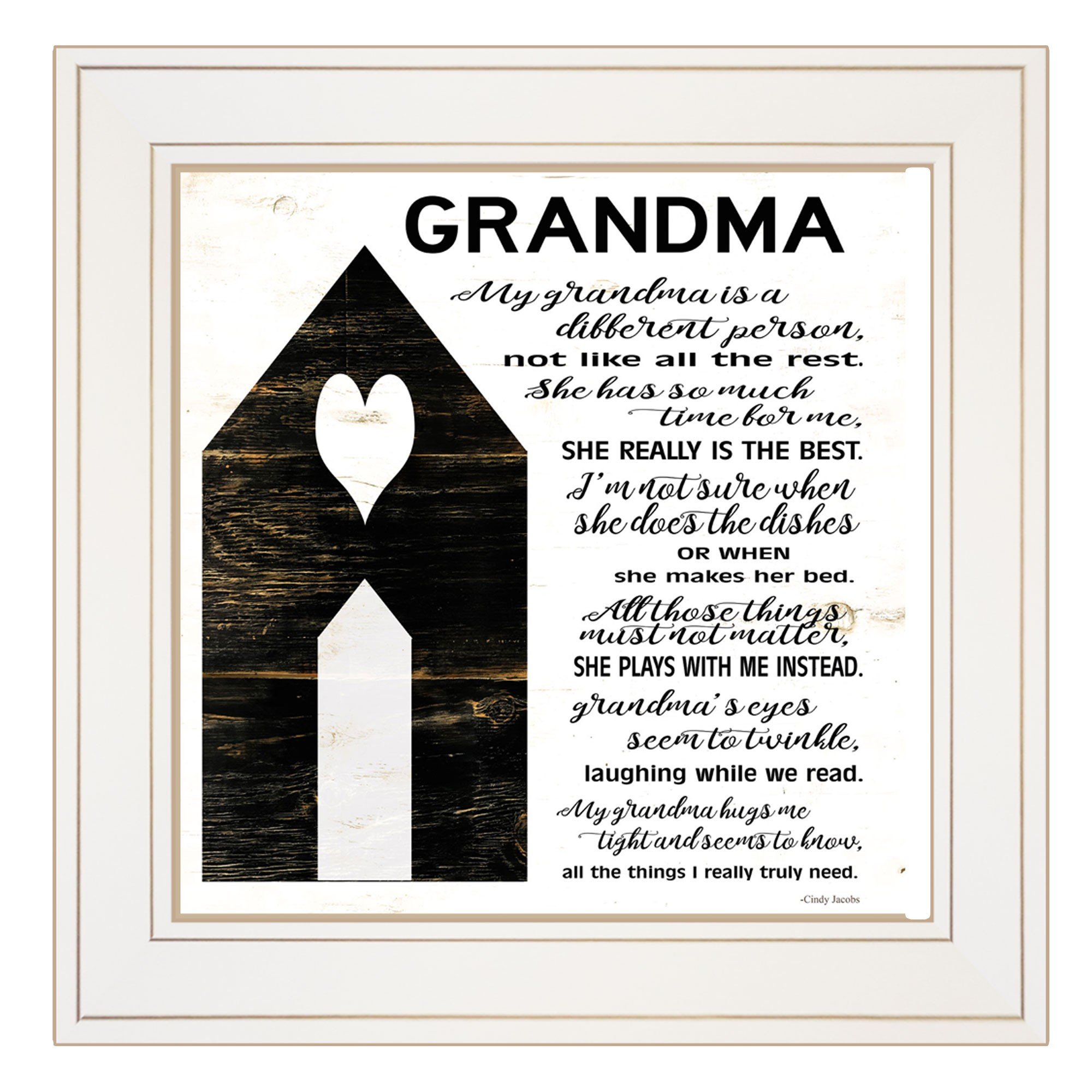 The my grandma white framed print wall art is the perfect decorative accessory for your home. This print is a visual artistic expression that allows you to decorate your space in style. Reproduced for you on paper, this hanging decorative accent will be a trendy and fashionable way to dress your walls. Adding this hanging wall art to your space to make your room feel more finished and attractive. Instantly liven up your space with this art that brings color and dimension to your walls. 15 inches H x 15 inches W x 1 inches D