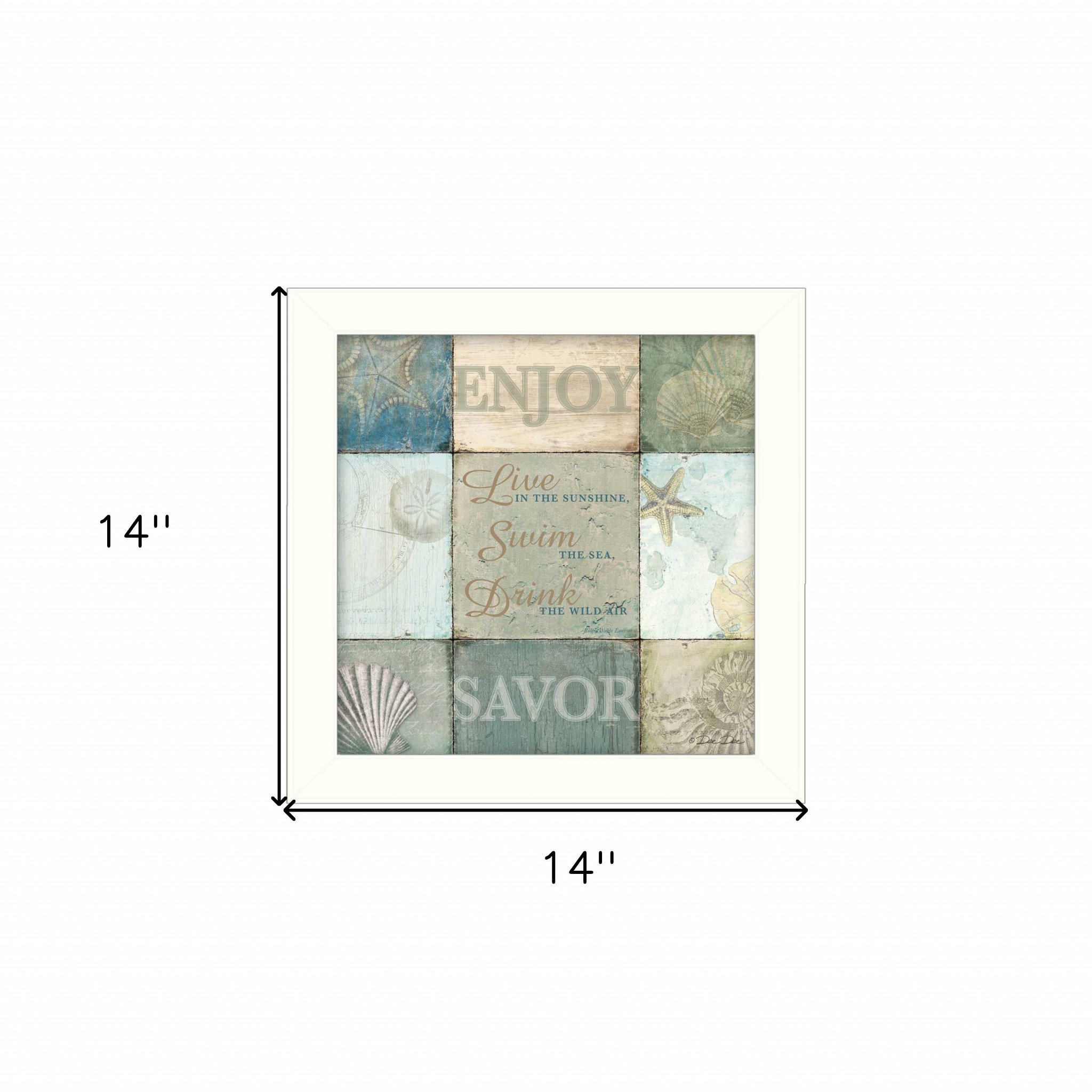 Add an air of fashion to your room and rejuvenate the space with this live in the sunshine 1 white framed print wall art. This print is a visual artistic expression that allows you to decorate your space in style. Reproduced for you on paper, this hanging decorative accent will be a trendy and fashionable way to dress your walls. Adding this hanging wall art to your space to make your room feel more finished and attractive. Instantly liven up your space with this art that brings color and dimension to your walls. 14-inch H x 14-inch W x 1-inch D