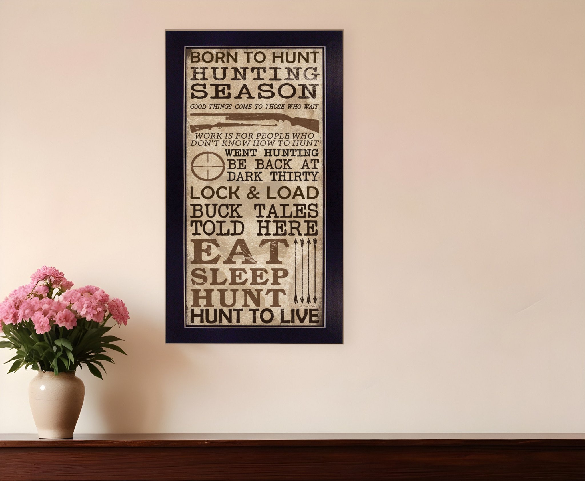 This hunting season black framed print wall art will add a beautiful decorative accent to your decor. This print is a visual artistic expression that allows you to decorate your space in style. Reproduced for you on paper, this hanging decorative accent will be a trendy and fashionable way to dress your walls. Hang on your wall to add some up to date fashion and decoration. Utilize this opportunity to create a focal point in the room with this fabulous wall decor option. 20-inch H x 11-inch W x 1-inch D