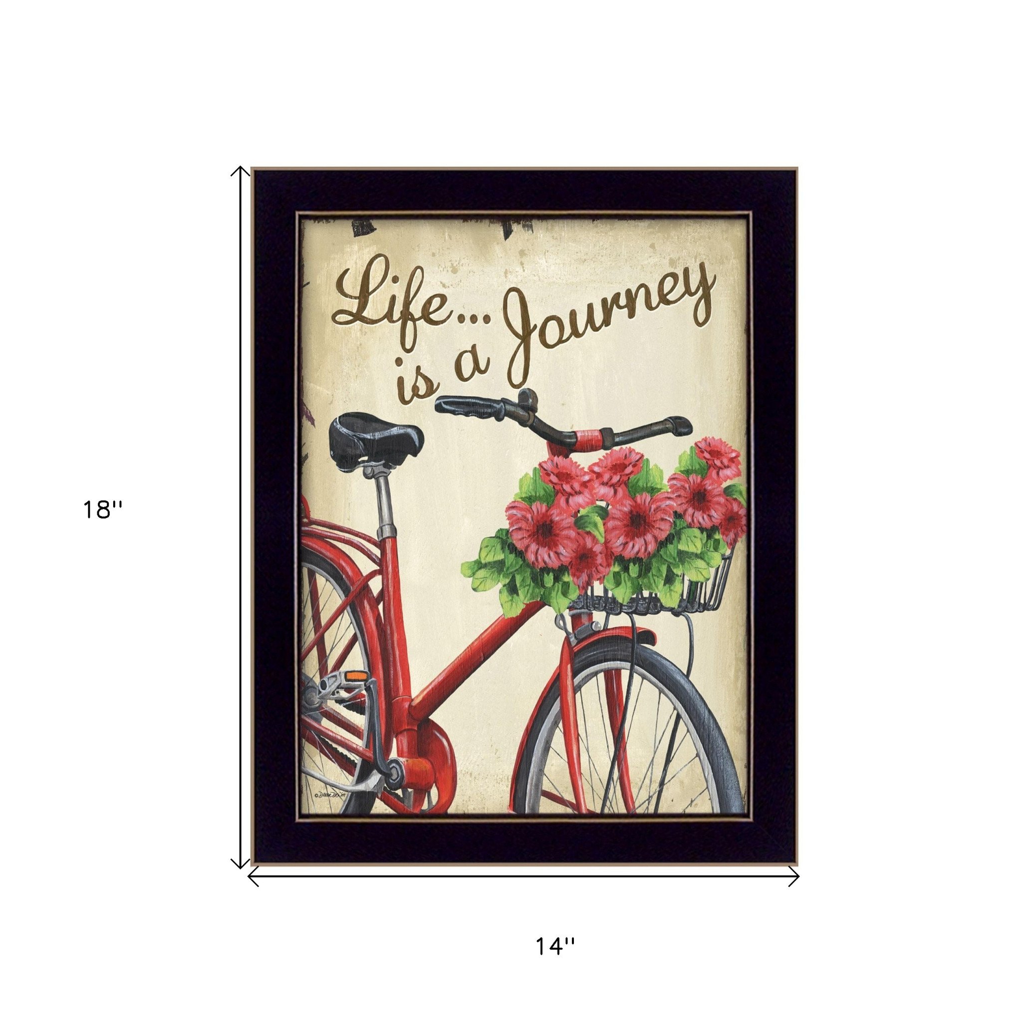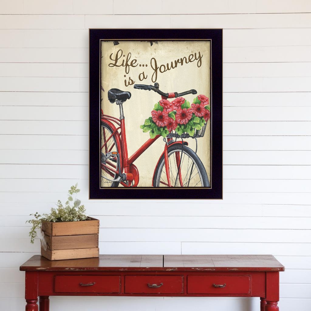 This life is a journey 1 black framed print wall art will add a beautiful decorative accent to your decor. This print is a visual artistic expression that allows you to decorate your space in style. Reproduced for you on paper, this hanging decorative accent will be a trendy and fashionable way to dress your walls. Hang on your wall to add some up to date fashion and decoration. Instantly liven up your space with this art that brings color and dimension to your walls. 18-inch H x 14-inch W x 1-inch D