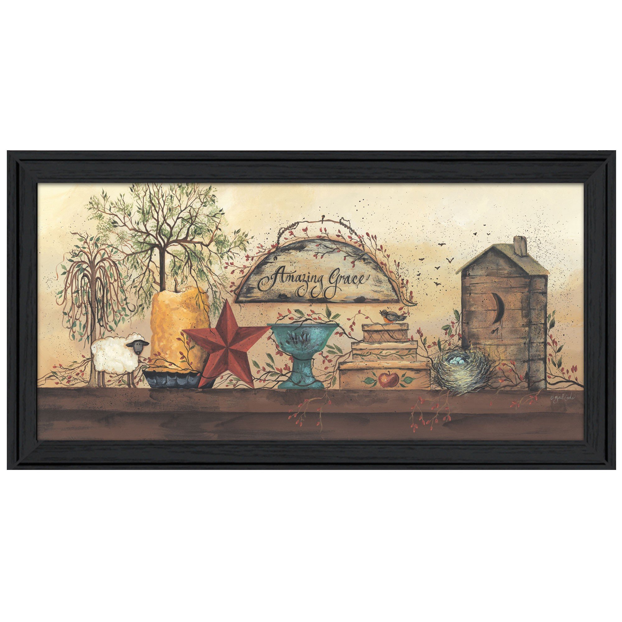This amazing grace shelf 3 black framed print wall art is the perfect way to celebrate and decorate for the christmas season. This print is a visual artistic expression that allows you to decorate your space in style. Reproduced for you on paper, this hanging decorative accent will be a trendy and fashionable way to dress your walls. Adding this hanging wall art to your space to make your room feel more finished and attractive. Instantly liven up your space with this art that brings color and dimension to your walls. 19-inch H x 37-inch W x 1-inch D