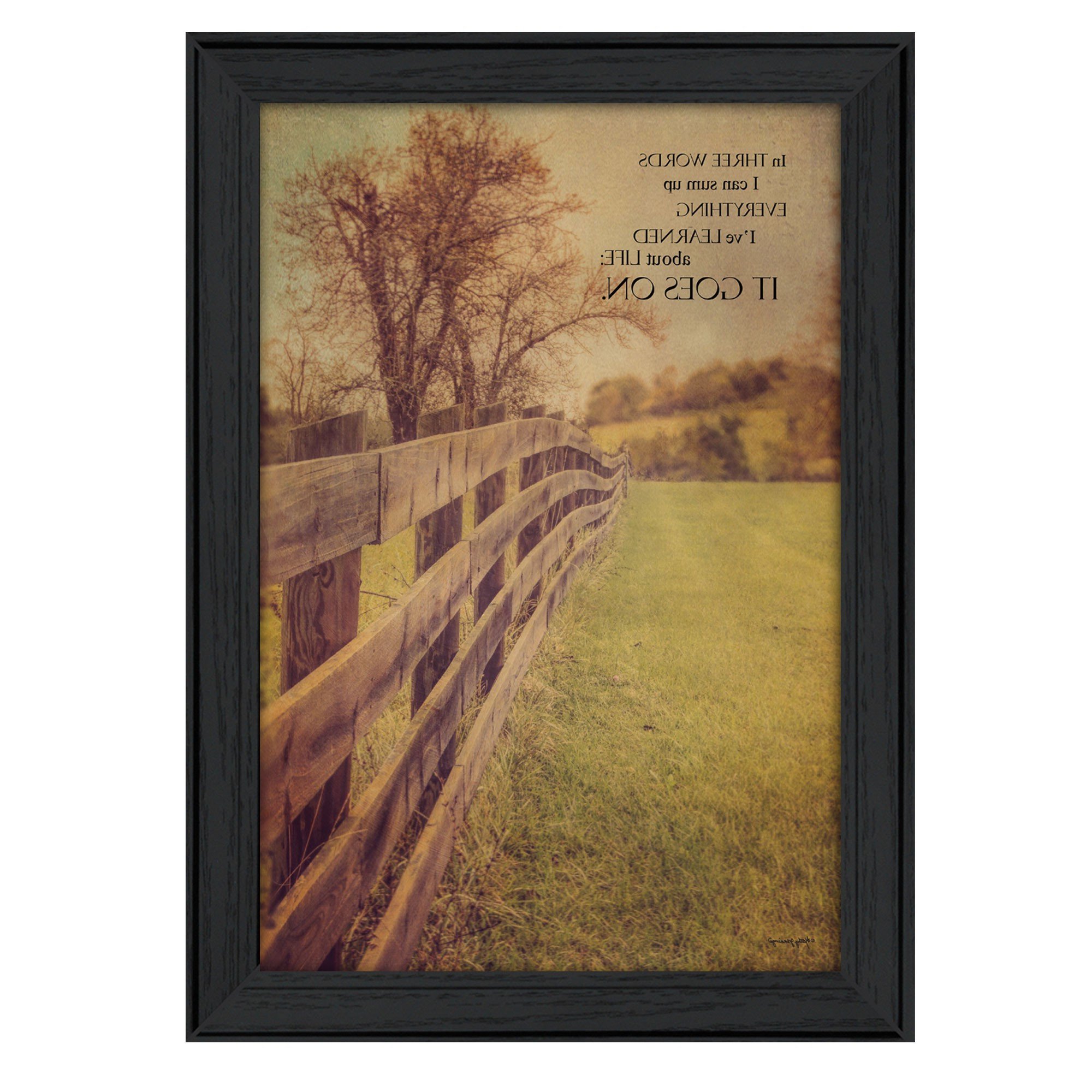 The life goes on black framed print wall art is the perfect decorative accessory for your home. This print is a visual artistic expression that allows you to decorate your space in style. Reproduced for you on paper, this hanging decorative accent will be a trendy and fashionable way to dress your walls. Adding this hanging wall art to your space to make your room feel more finished and attractive. Instantly liven up your space with this art that brings color and dimension to your walls. 20-inch H x 14-inch W x 1-inch D