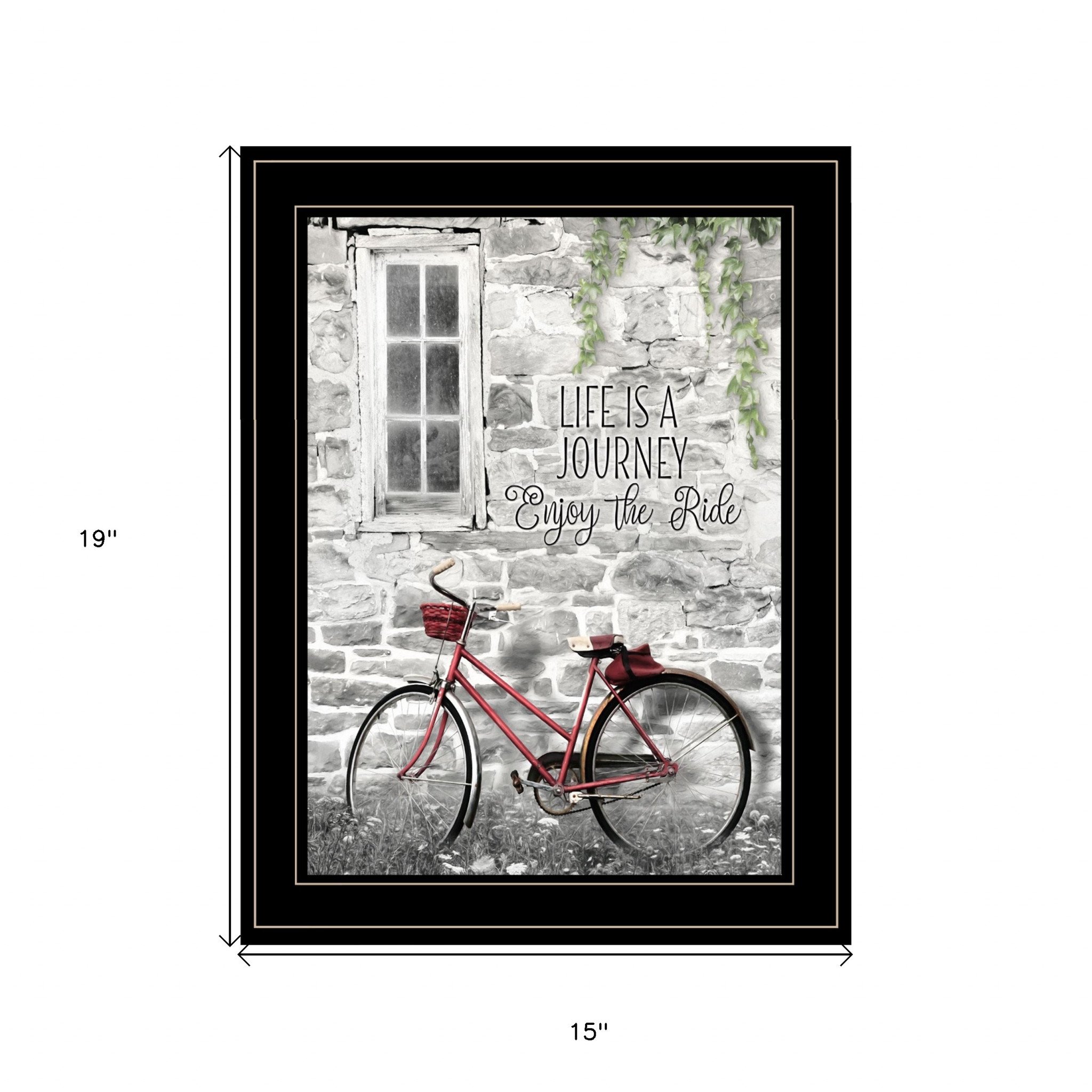 Bring some sizzle to your space with this eye-catching life is a journey 3 black framed print wall art. This transportation inspired wall art features a bicycle icon and will bring a refreshing look and perspective to your walls. This print is a visual artistic expression that allows you to decorate your space in style. Reproduced for you on paper, this hanging decorative accent will be a trendy and fashionable way to dress your walls. Hang on your wall to add some up to date fashion and decoration. Utilize this opportunity to create a focal point in the room with this fabulous wall decor option. 19-inch H x 15-inch W x 1-inch D