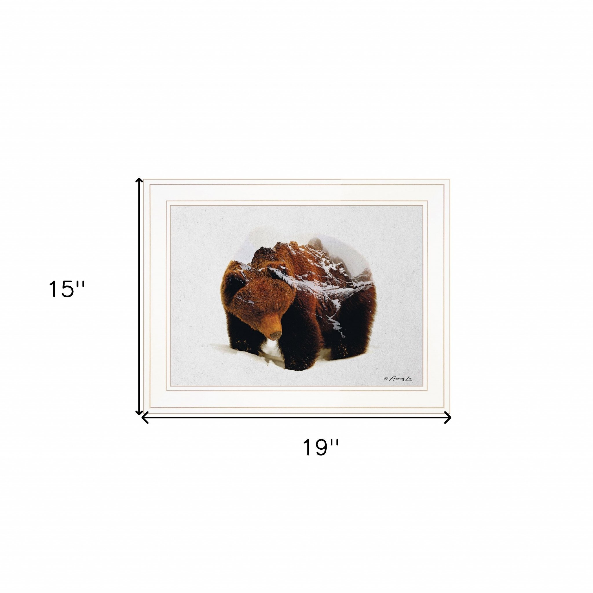 This bear in the mountains 1 white framed print wall art will add a beautiful decorative accent to your decor. Update your walls with this woodland animal decor. This print is a visual artistic expression that allows you to decorate your space in style. Reproduced for you on paper, this hanging decorative accent will be a trendy and fashionable way to dress your walls. Adding this hanging wall art to your space to make your room feel more finished and attractive. Instantly liven up your space with this art that brings color and dimension to your walls. 15-inch H x 19-inch W x 1-inch D