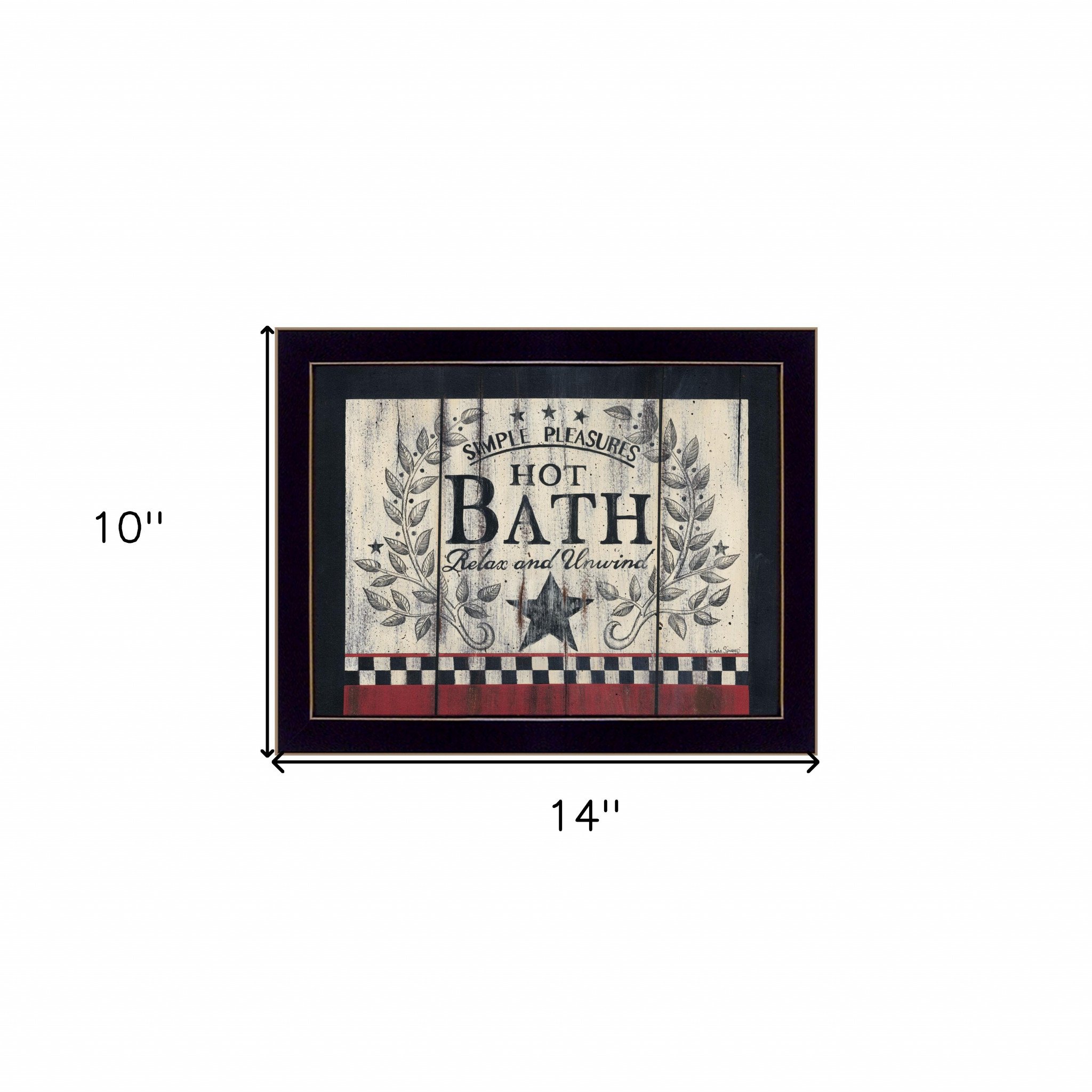 Bring some sizzle to your space with this eye-catching hot bath 15 black framed print bathroom wall art. This print is a visual artistic expression that allows you to decorate your space in style. Reproduced for you on paper, this hanging decorative accent will be a trendy and fashionable way to dress your walls. Hang on your wall to add some up to date fashion and decoration. Utilize this opportunity to create a focal point in the room with this fabulous wall decor option. 10-inch H x 14-inch W x 1-inch D
