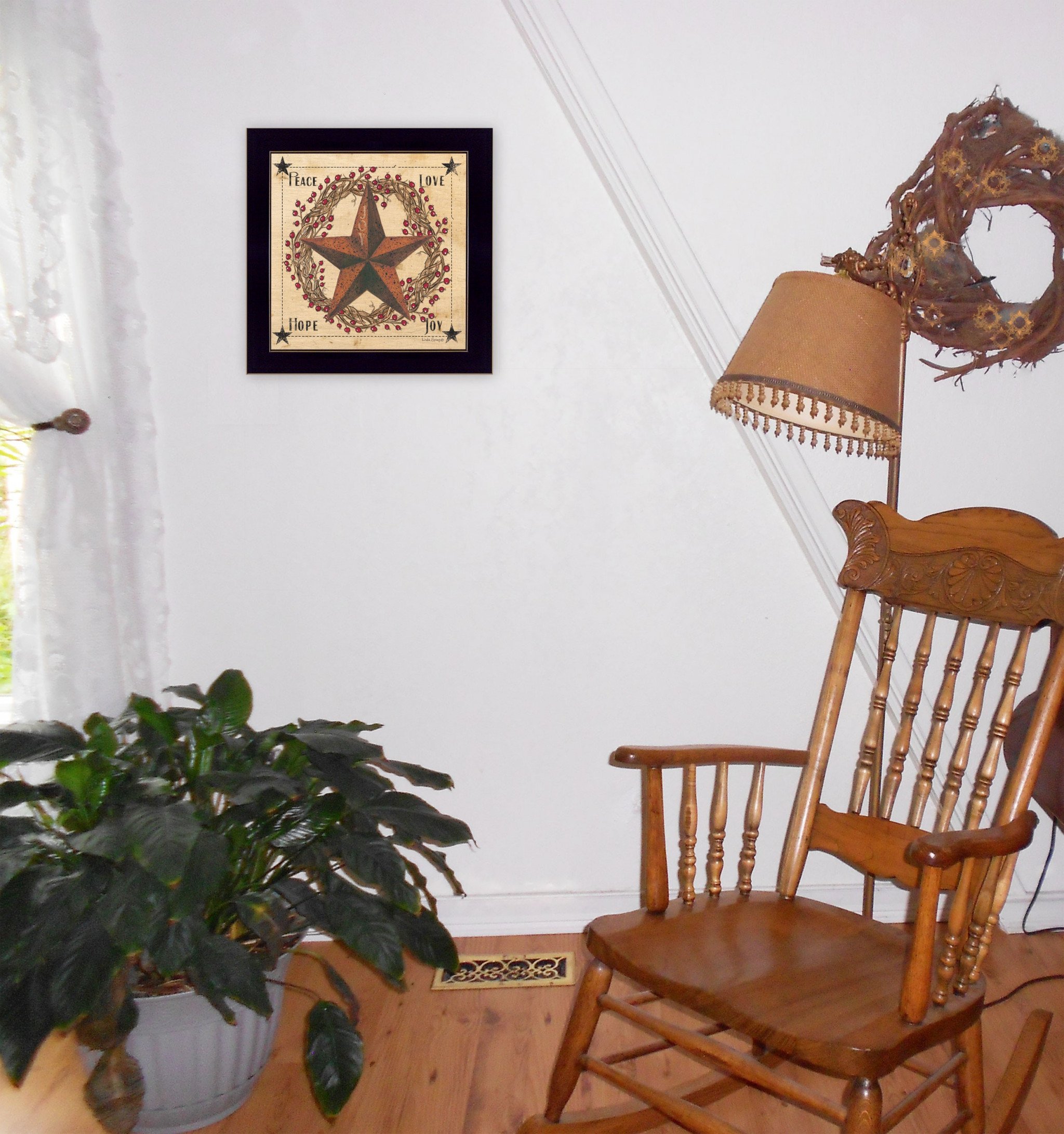 Set a festive christmas mood with this peace love hope joy black framed print wall art. This print is a visual artistic expression that allows you to decorate your space in style. Reproduced for you on paper, this hanging decorative accent will be a trendy and fashionable way to dress your walls. Adding this hanging wall art to your space to make your room feel more finished and attractive. Instantly liven up your space with this art that brings color and dimension to your walls. 14-inch H x 14-inch W x 1-inch D