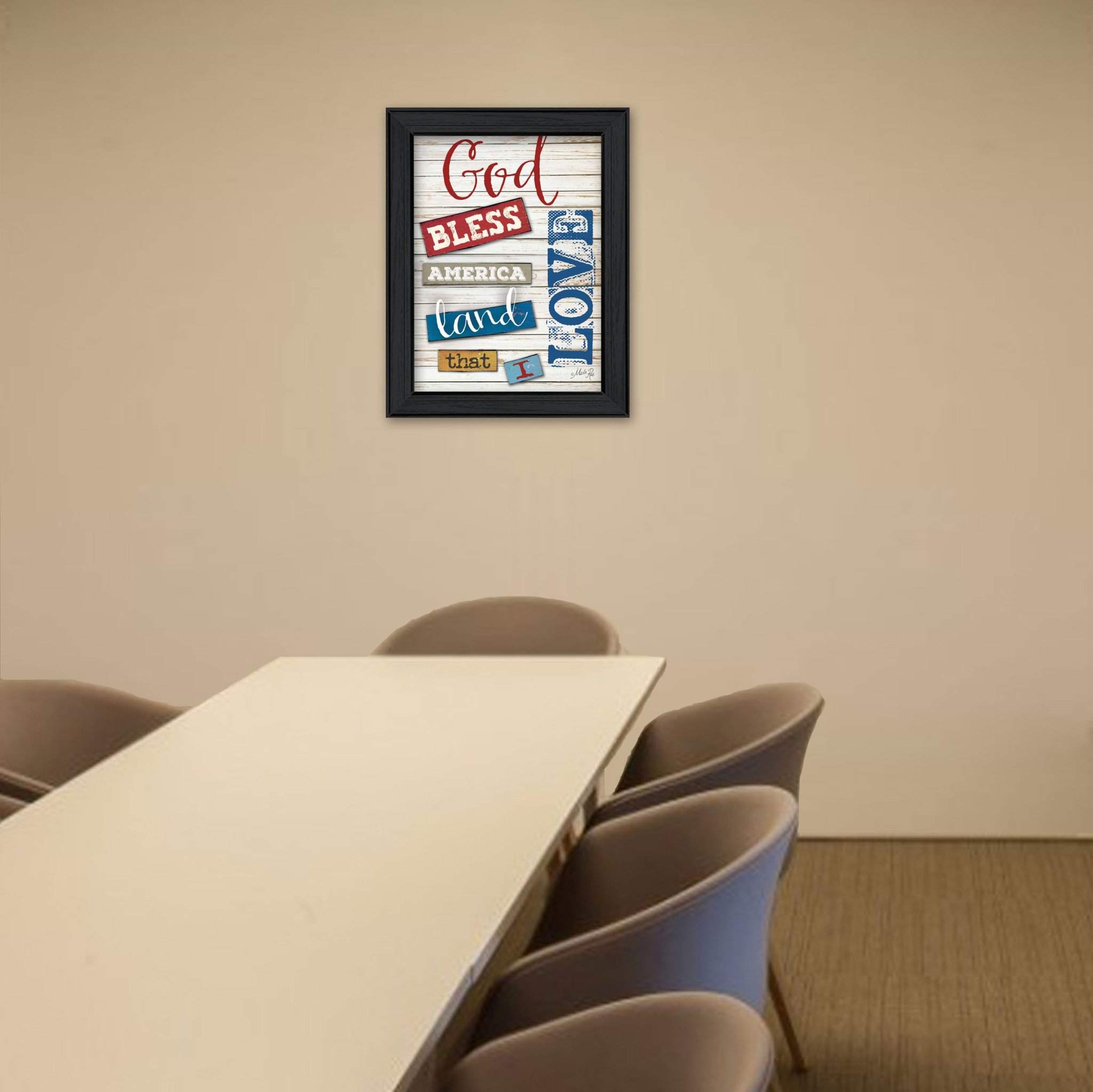 Add an air of fashion to your room and rejuvenate the space with this god bless america 4 black framed print wall art. This print is a visual artistic expression that allows you to decorate your space in style. Reproduced for you on paper, this hanging decorative accent will be a trendy and fashionable way to dress your walls. Adding this hanging wall art to your space to make your room feel more finished and attractive. Utilize this opportunity to create a focal point in the room with this fabulous wall decor option. 18-inch H x 14-inch W x 1-inch D