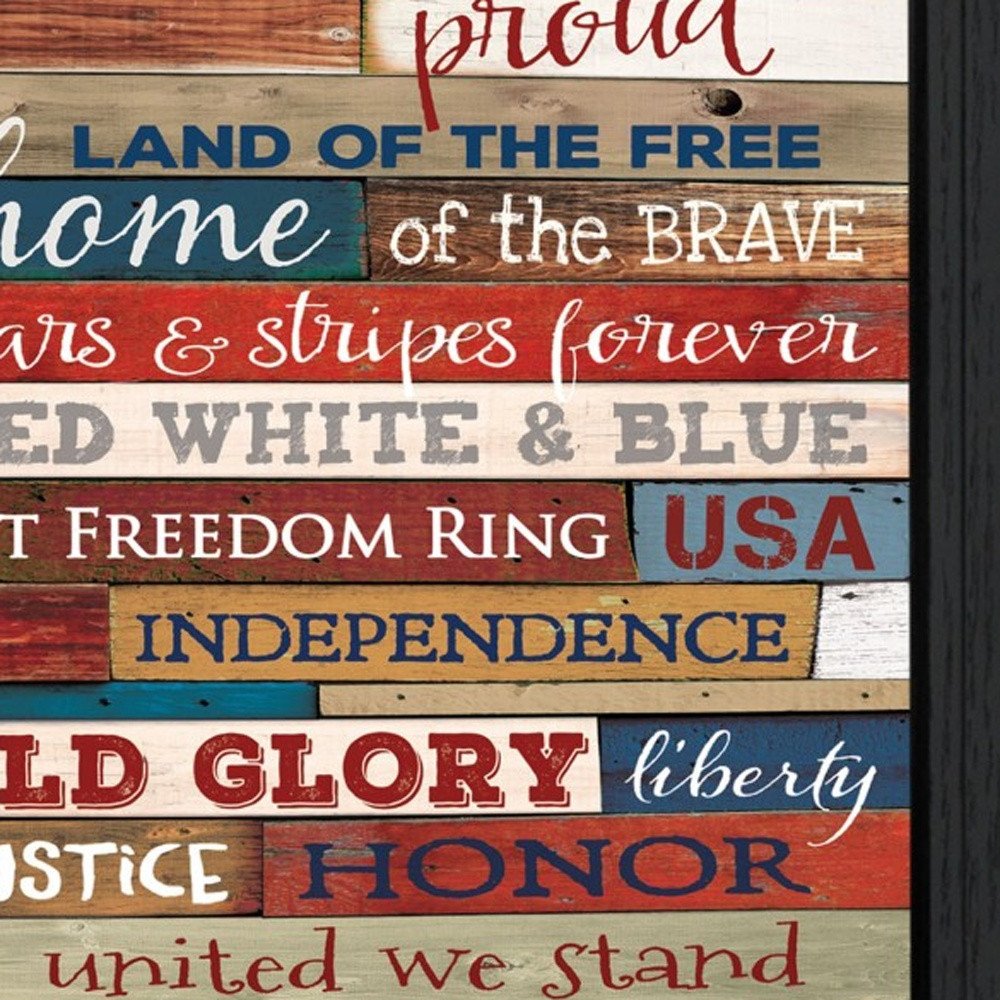 This america proud 1 black framed print wall art will add a beautiful decorative accent to your decor. This print is a visual artistic expression that allows you to decorate your space in style. Reproduced for you on paper, this hanging decorative accent will be a trendy and fashionable way to dress your walls. Hang on your wall to add some up to date fashion and decoration. Instantly liven up your space with this art that brings color and dimension to your walls. 14-inch H x 10-inch W x 1-inch D