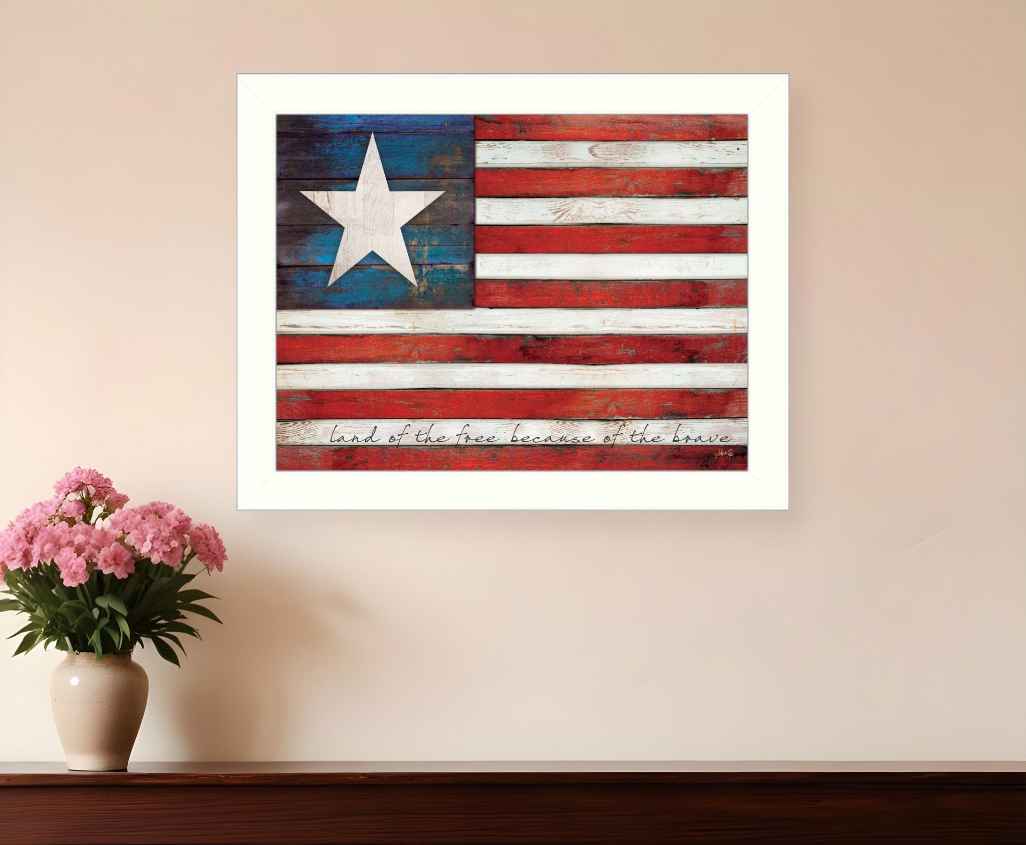 The land of the free white framed print wall art is the perfect decorative accessory for your home. This print is a visual artistic expression that allows you to decorate your space in style. Reproduced for you on paper, this hanging decorative accent will be a trendy and fashionable way to dress your walls. Hang on your wall to add some up to date fashion and decoration. Utilize this opportunity to create a focal point in the room with this fabulous wall decor option. 20-inch H x 26-inch W x 1-inch D