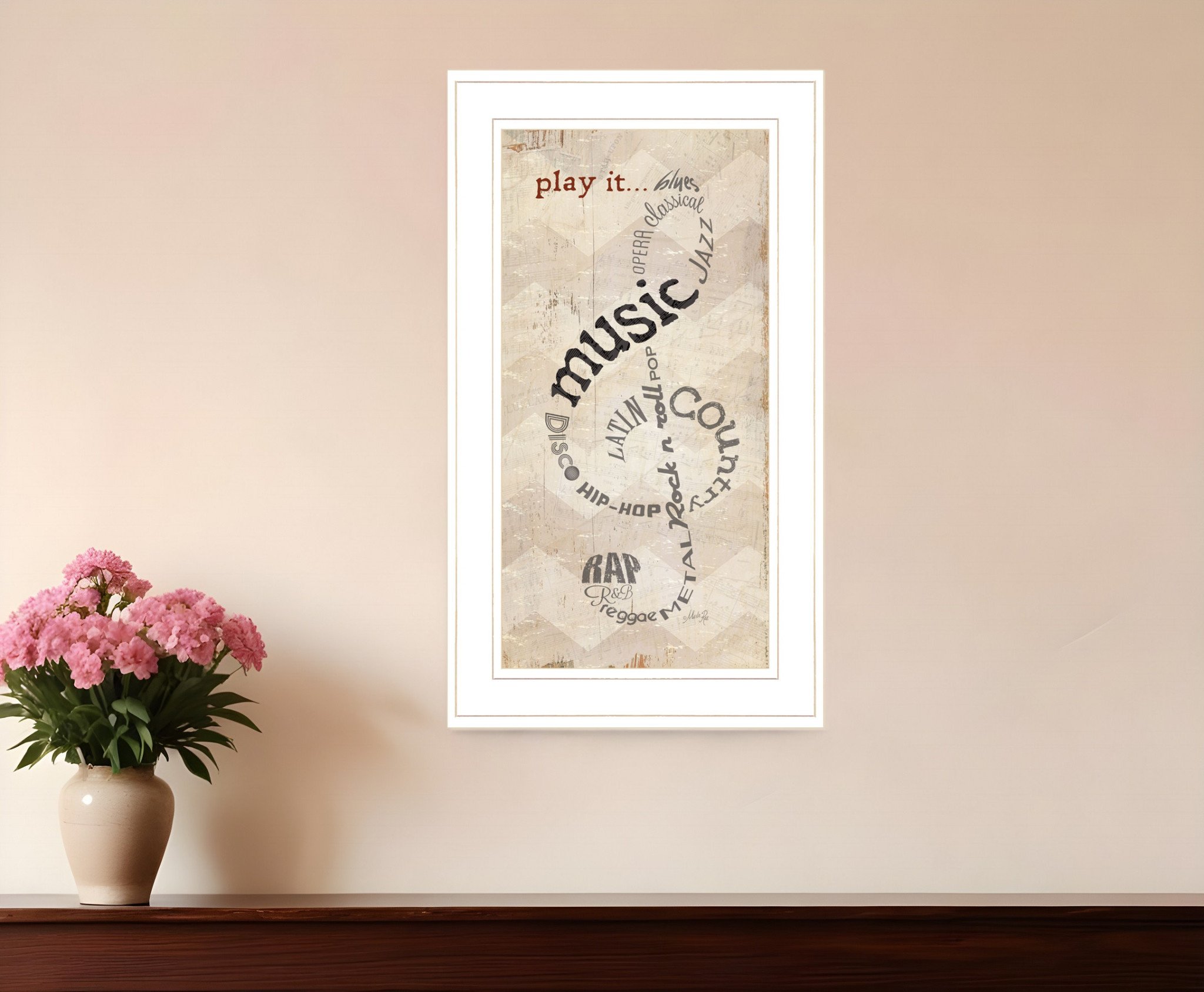 Bring some sizzle to your space with this eye-catching play it 1 white framed print wall art. This print is a visual artistic expression that allows you to decorate your space in style. Reproduced for you on paper, this hanging decorative accent will be a trendy and fashionable way to dress your walls. Hang on your wall to add some up to date fashion and decoration. Utilize this opportunity to create a focal point in the room with this fabulous wall decor option. 21-inch H x 12-inch W x 1-inch D