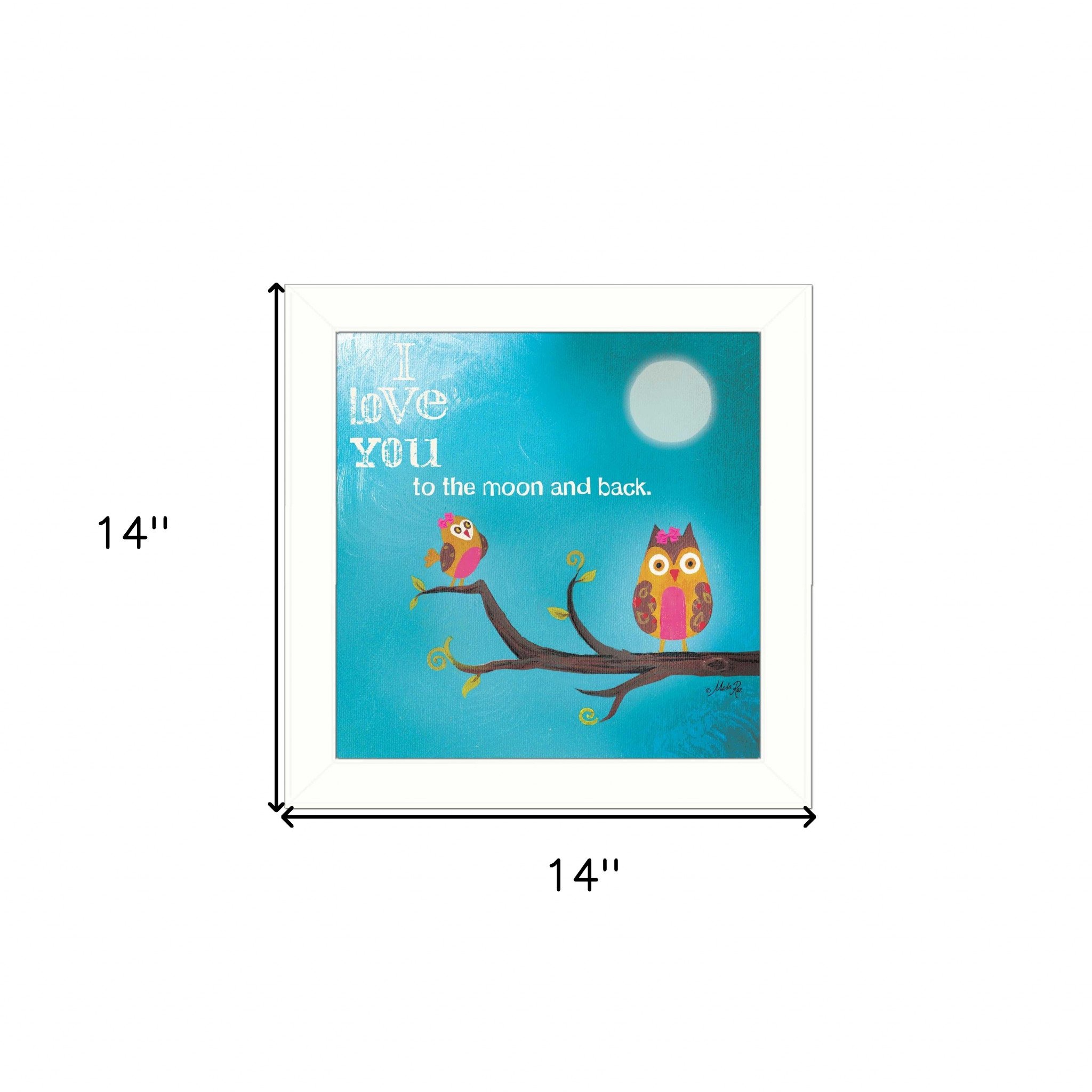 This to the moon ii white framed print wall art will add a beautiful decorative accent to your decor. Add a sense of the woods, mountain or lodge lifestyle to your walls with this outdoorsy owl wall art. This print is a visual artistic expression that allows you to decorate your space in style. Reproduced for you on paper, this hanging decorative accent will be a trendy and fashionable way to dress your walls. Hang on your wall to add some up to date fashion and decoration. Instantly liven up your space with this art that brings color and dimension to your walls. 14-inch H x 14-inch W x 1-inch D