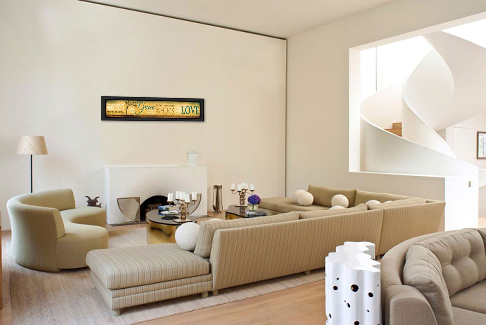 Bring some sizzle to your space with this eye-catching grace and love black framed print wall art. This print is a visual artistic expression that allows you to decorate your space in style. Reproduced for you on paper, this hanging decorative accent will be a trendy and fashionable way to dress your walls. Hang on your wall to add some up to date fashion and decoration. Instantly liven up your space with this art that brings color and dimension to your walls. 9-inch H x 39-inch W x 1-inch D