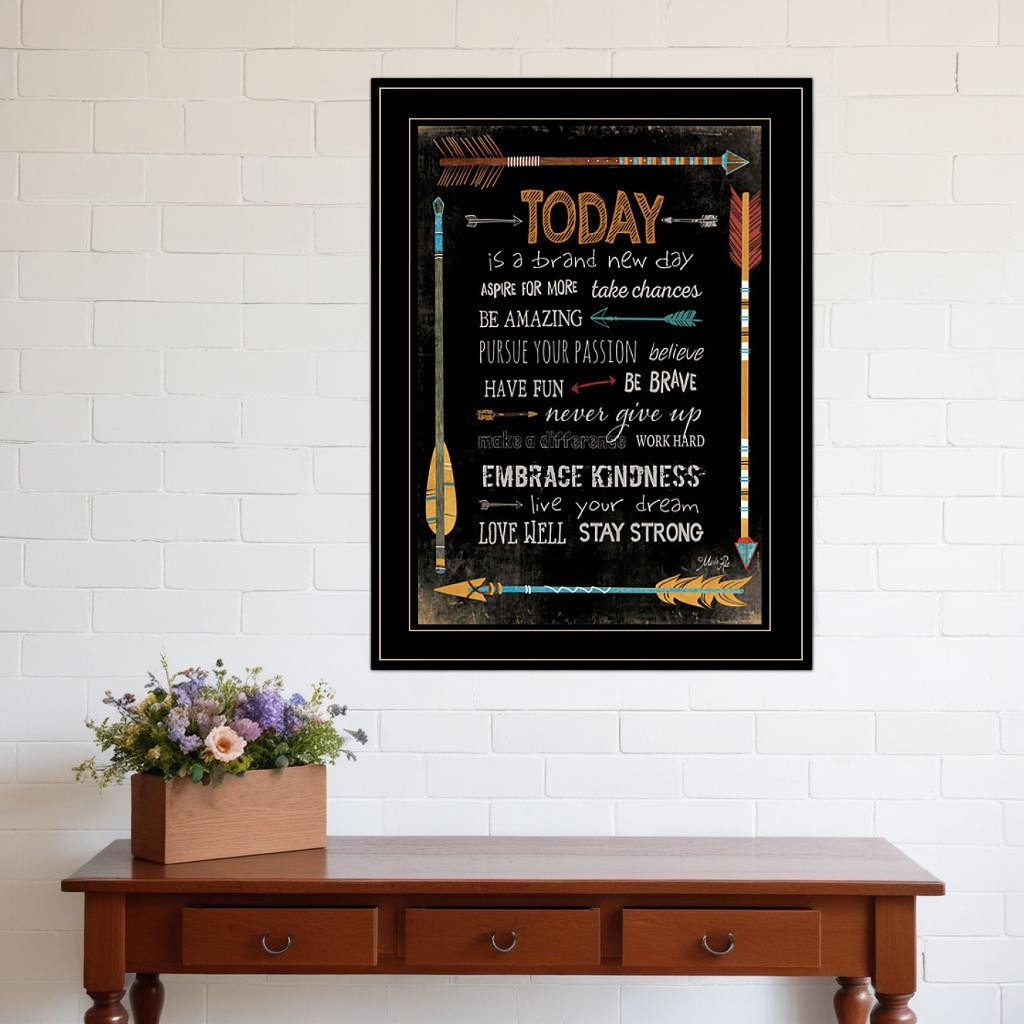 The today is a brand new day 2 black framed print wall art is the perfect decorative accessory for your home. This print is a visual artistic expression that allows you to decorate your space in style. Reproduced for you on paper, this hanging decorative accent will be a trendy and fashionable way to dress your walls. Hang on your wall to add some up to date fashion and decoration. Utilize this opportunity to create a focal point in the room with this fabulous wall decor option. 27-inch H x 21-inch W x 1-inch D