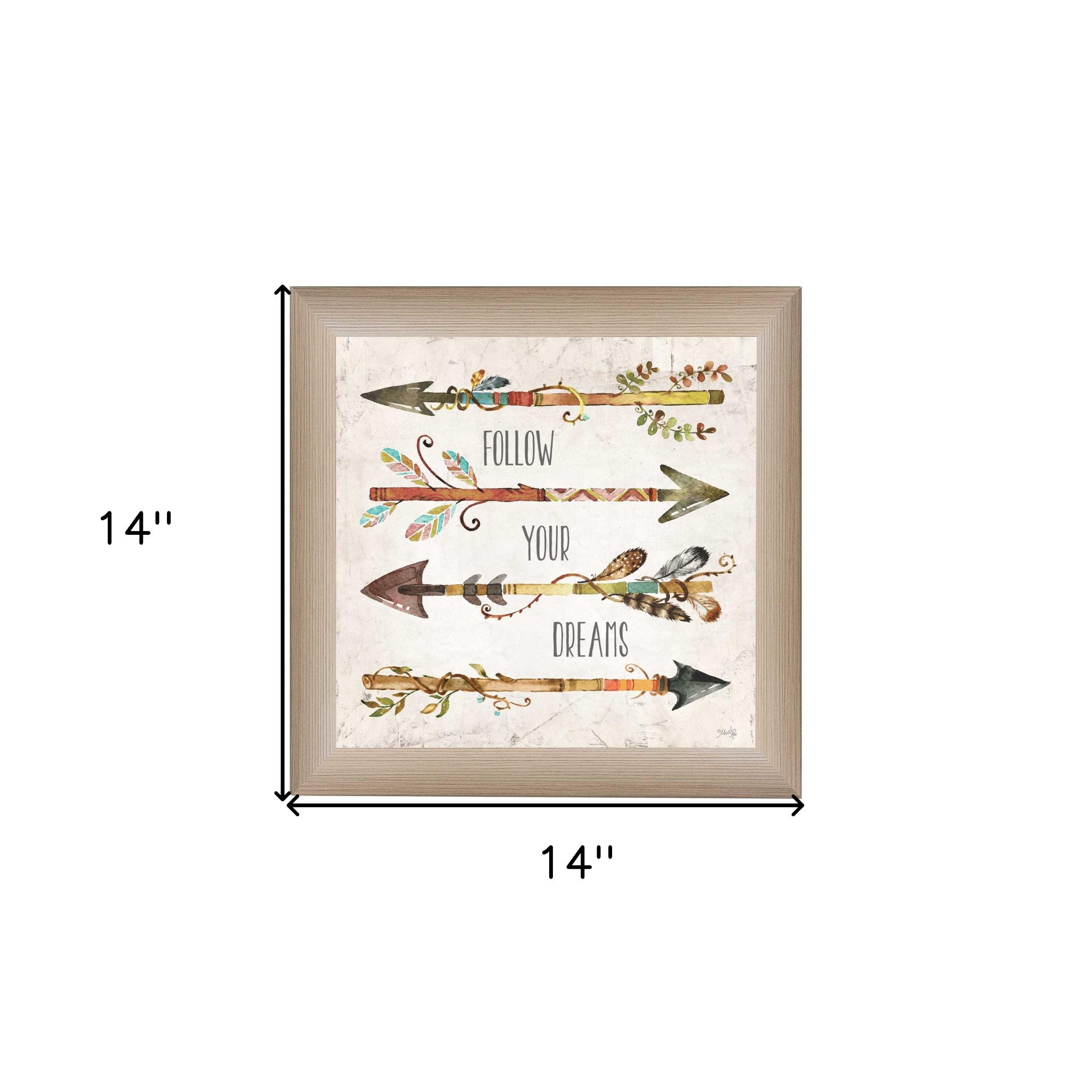 Unique and decorative, this follow your dreams brown framed print wall art will leave a lasting impression. This print is a visual artistic expression that allows you to decorate your space in style. Reproduced for you on paper, this hanging decorative accent will be a trendy and fashionable way to dress your walls. Adding this hanging wall art to your space to make your room feel more finished and attractive. Utilize this opportunity to create a focal point in the room with this fabulous wall decor option. 14-inch H x 14-inch W x 1-inch D